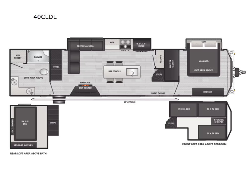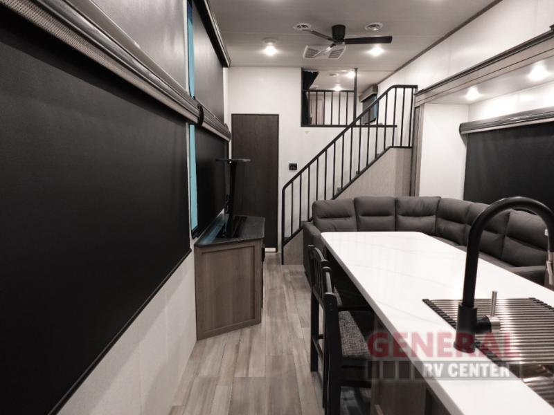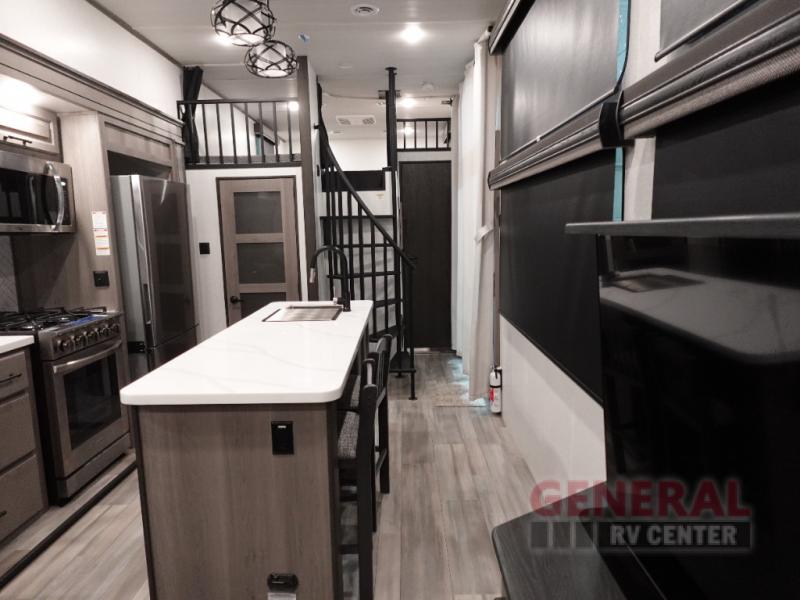 The Residence 40CLDL features two expansive slide-outs, significantly enhancing the interior living space. These slide-outs create a roomy and inviting atmosphere, perfect for accommodating family and friends. With the ability to sleep up to eight people, this RV is ideal for large families or groups seeking adventure without sacrificing comfort. The intelligently designed floor plan includes a master bedroom, a versatile loft area, and a convertible living space, ensuring everyone has a cozy place to rest.