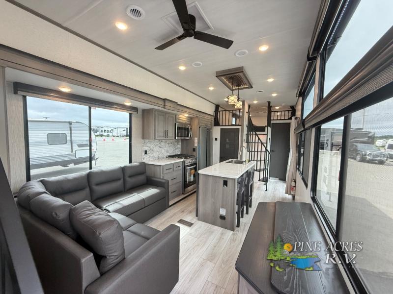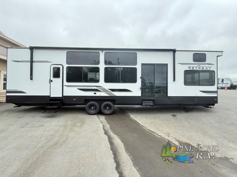 Introducing the 2025 Keystone RV Retreat 391CLDL Park Model, a perfect blend of comfort and functionality designed for those who seek a home away from home. This meticulously crafted RV offers an expansive living space with two slide-outs, ensuring ample room for relaxation and entertainment. Measuring 35 feet in length, the Retreat 391CLDL is engineered to provide a spacious and inviting environment, making it an ideal choice for families or groups looking to explore the great outdoors without sacrificing the comforts of home.