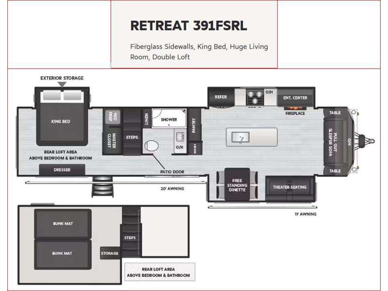 The Retreat 391FSRL also boasts a luxurious master bedroom with a queen-sized bed and ample wardrobe space. The bathroom is equipped with a spacious shower, modern fixtures, and plenty of storage, ensuring convenience and comfort. With its robust construction and thoughtful design, the 2025 Keystone RV Retreat 391FSRL is more than just an RV; it's a home away from home. Whether you're planning a weekend getaway or an extended stay, this Park Model offers everything you need to enjoy your travels in style. Don't miss the opportunity to own this exceptional RV and create unforgettable memories on the road.