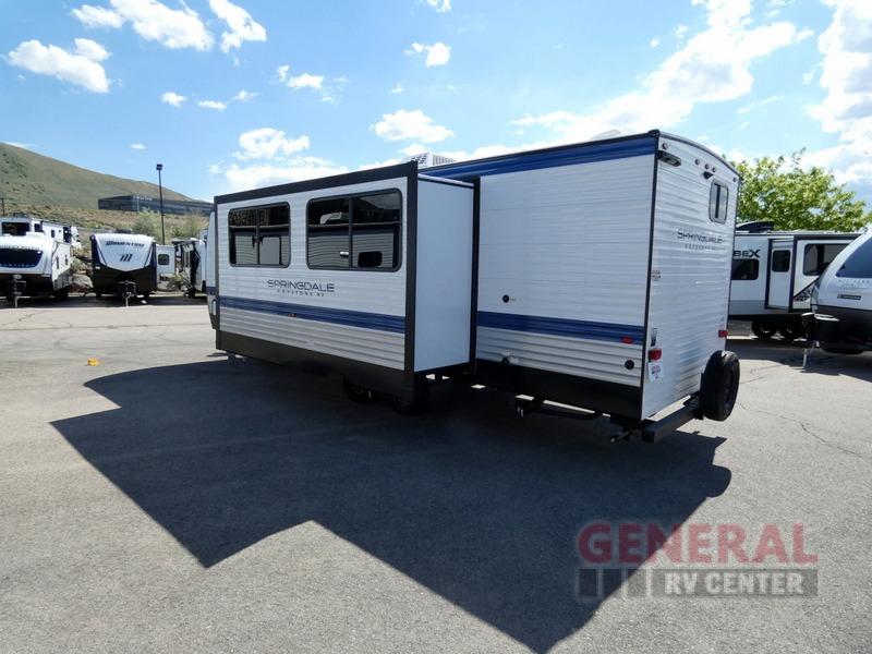 Introducing the 2025 Keystone RV Springdale Classic 269DBC Travel Trailer, a perfect blend of comfort and functionality for your next adventure. This meticulously designed travel trailer offers a spacious and inviting interior, thanks to its single slide-out feature, which enhances the living space for a more comfortable experience. With a length of 25 feet, this trailer provides ample room for family and friends, making it an ideal choice for those who love to explore the great outdoors without sacrificing the comforts of home.