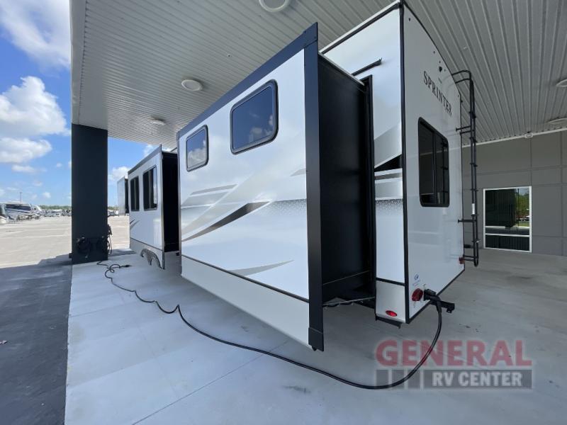 Introducing the 2025 Keystone RV Sprinter 3810QBS Fifth Wheel, a pinnacle of luxury and practicality for the discerning traveler. This meticulously crafted RV is designed to elevate your camping experience, offering a spacious and comfortable retreat on wheels. With a length of 35 feet, this fifth wheel provides ample room for relaxation and entertainment, making it an ideal choice for families or groups seeking adventure without compromising on comfort.