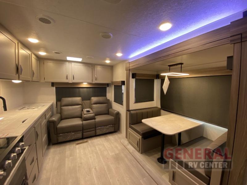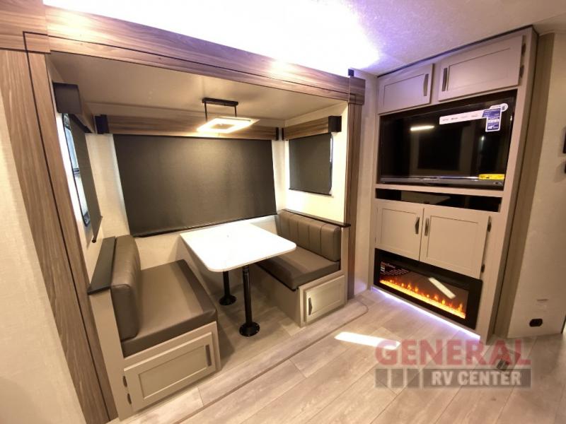 Step inside, and you'll find a thoughtfully designed interior that can comfortably sleep up to three people. The single slide-out expands your living space, providing a cozy area to relax after a day of exploration. Whether you're lounging with a good book or enjoying a meal, the well-appointed living area offers all the amenities you need. The kitchen is equipped with modern appliances, ensuring you can whip up your favorite meals no matter where you are. Plus, the stylish finishes and clever storage solutions make it feel like a home away from home.