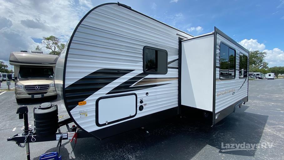 Measuring approximately 22 feet in length, the Sportsmen SE 241RKSE is compact enough for easy towing yet spacious enough to provide all the amenities you need on the road. Weighing in at just 2,674 kilograms, this travel trailer is lightweight, ensuring a smooth and efficient towing experience. The thoughtful design includes a well-equipped kitchen, a cozy dining area, and a comfortable sleeping arrangement, ensuring you have everything you need for a relaxing trip.
