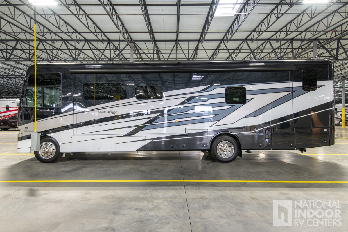 This exceptional RV features three slide-outs, providing ample living space and enhancing the interior's open and airy feel. The thoughtfully designed layout ensures maximum comfort, whether you're relaxing after a day of exploration or entertaining guests. The Bay Star 3629 boasts a length of 31 feet, offering a perfect balance of maneuverability and spaciousness. Inside, you'll find high-quality finishes and modern amenities that cater to all your travel needs, making every trip a luxurious retreat.