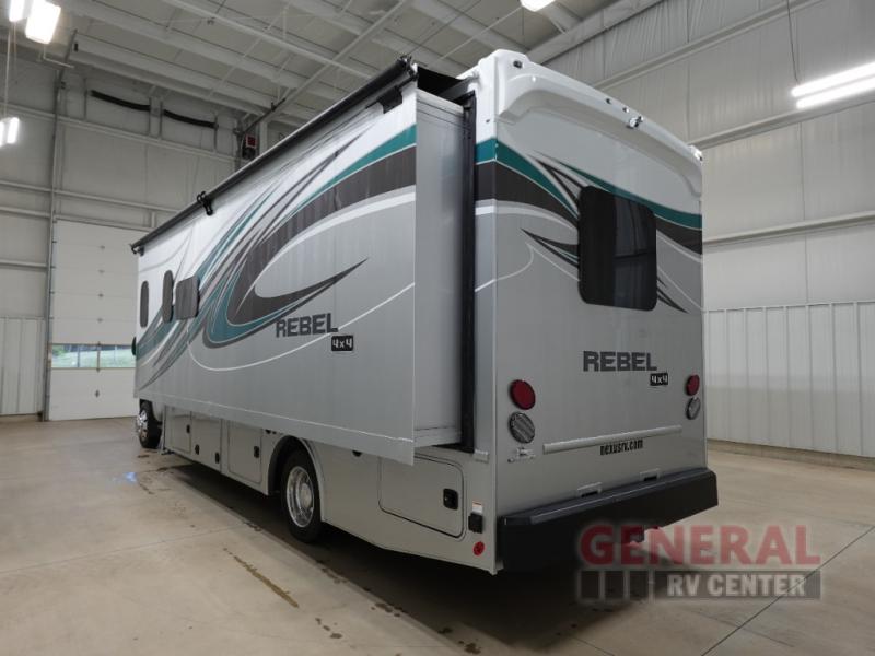 Measuring 25 feet in length, the Rebel 30R is compact enough for easy maneuverability while still providing all the amenities you need for a comfortable stay. The RV boasts a generous fuel capacity of 246 liters, ensuring you can travel longer distances without frequent refueling stops. Inside, you'll find a well-equipped kitchen, a cozy dining area, and sleeping arrangements that include a master bed, convertible dinette, and additional sleeping spaces to accommodate everyone comfortably.
