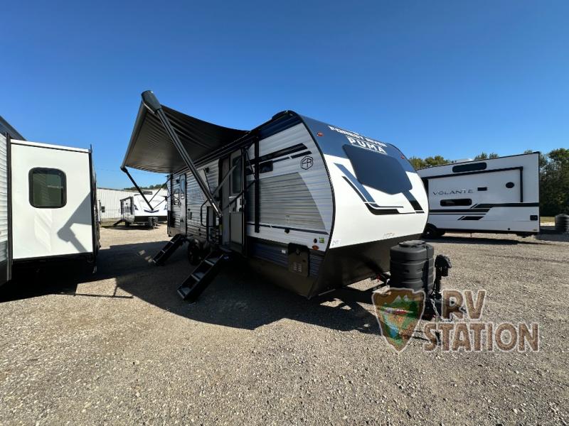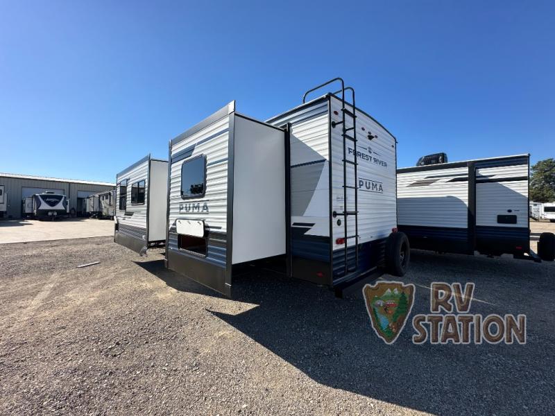 Step inside and you'll find two slide-outs that create a roomy interior, perfect for relaxing after a day of exploring. The Puma can sleep up to five people, making it ideal for family getaways or trips with friends. Whether you're lounging in the living area or catching some Z's in the comfy sleeping quarters, you'll appreciate the thoughtful design and attention to detail throughout. The kitchen is well-equipped for whipping up your favorite meals on the road, and the bathroom offers all the comforts of home.