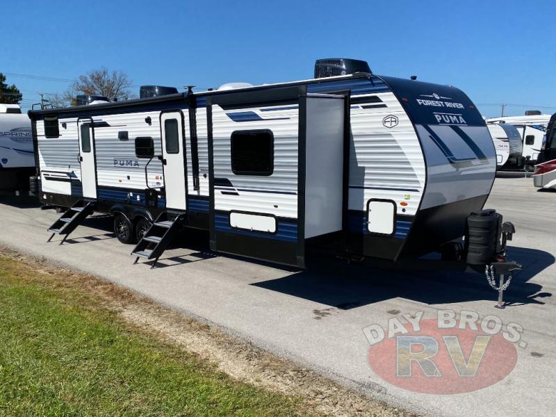 Introducing the 2025 Palomino Puma 32BHQS Travel Trailer, a perfect blend of comfort, space, and modern amenities designed to elevate your travel experiences. With a length of 32 feet and a weight of approximately 4,119 kilograms, this travel trailer offers a robust yet manageable option for families and groups seeking adventure without compromising on luxury. Its three slide-outs significantly expand the living space, providing ample room for relaxation and entertainment.