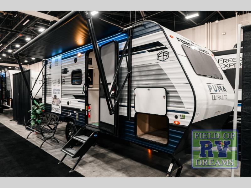 Step inside to find a thoughtfully designed interior that can comfortably sleep up to four people. The clever use of space is highlighted by a single slide-out, which expands the living area to provide extra room for relaxation and entertainment. Whether you're enjoying a meal at the dinette or unwinding after a day of exploration, the Puma Ultra Lite ensures you have all the amenities you need. The modern kitchen is equipped with everything you need to whip up your favorite meals, while the cozy sleeping quarters promise a restful night's sleep.