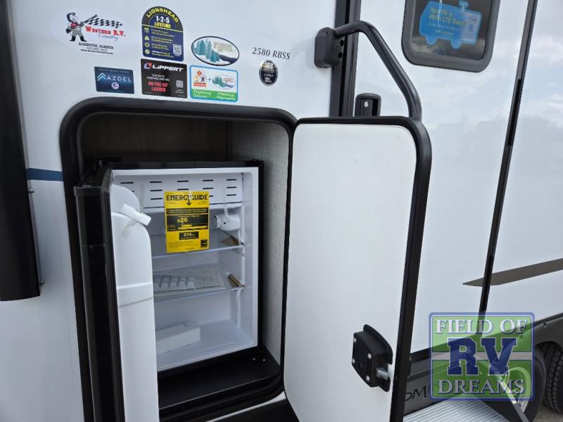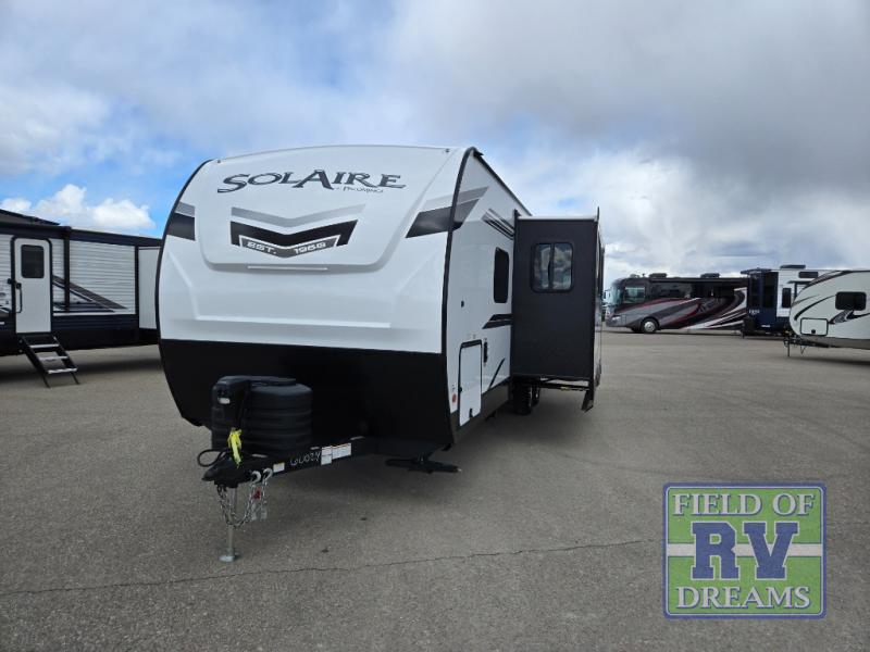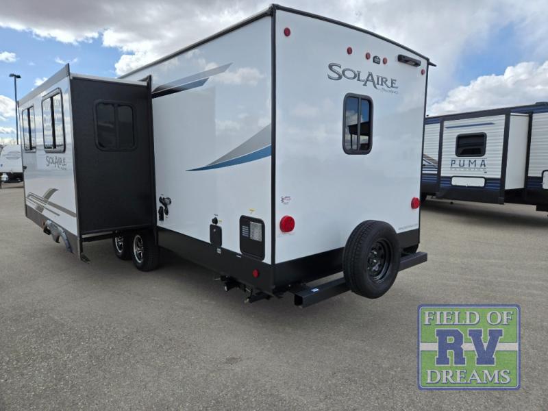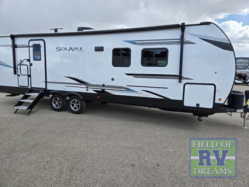 The SolAire 2580RBSS features one slide-out, providing extra room to relax and enjoy your time on the road. Inside, you'll find a well-appointed interior with modern amenities to enhance your camping experience. The kitchen is equipped with everything you need to prepare meals, while the cozy sleeping areas ensure a restful night's sleep. The thoughtful layout maximizes space, offering both comfort and functionality.