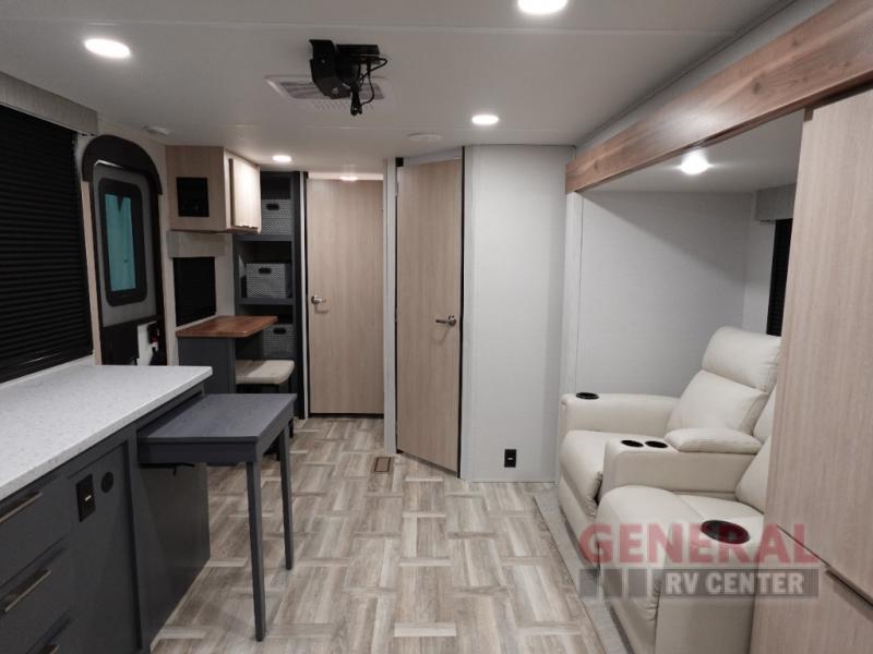 Step inside to find a thoughtfully designed interior featuring one convenient slide-out, which expands your living space to create a welcoming atmosphere. The Tracer 255DS comfortably sleeps two, providing a restful sanctuary after a day of exploration. The well-equipped kitchen, complete with modern appliances, allows you to whip up your favorite meals with ease. Meanwhile, the inviting seating area is perfect for relaxing with a good book or enjoying a movie night.