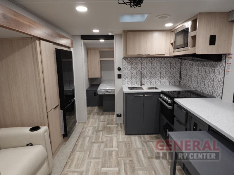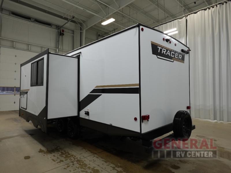 The Tracer 255DS features one slide-out, which significantly expands the living area, providing a roomy and inviting atmosphere. Inside, you'll find a well-appointed interior that comfortably sleeps two, ensuring a restful night's sleep after a day of exploration. The thoughtful layout includes a fully equipped kitchen with modern appliances, a comfortable seating area, and a stylish bathroom, all designed to make your travels as enjoyable as possible.