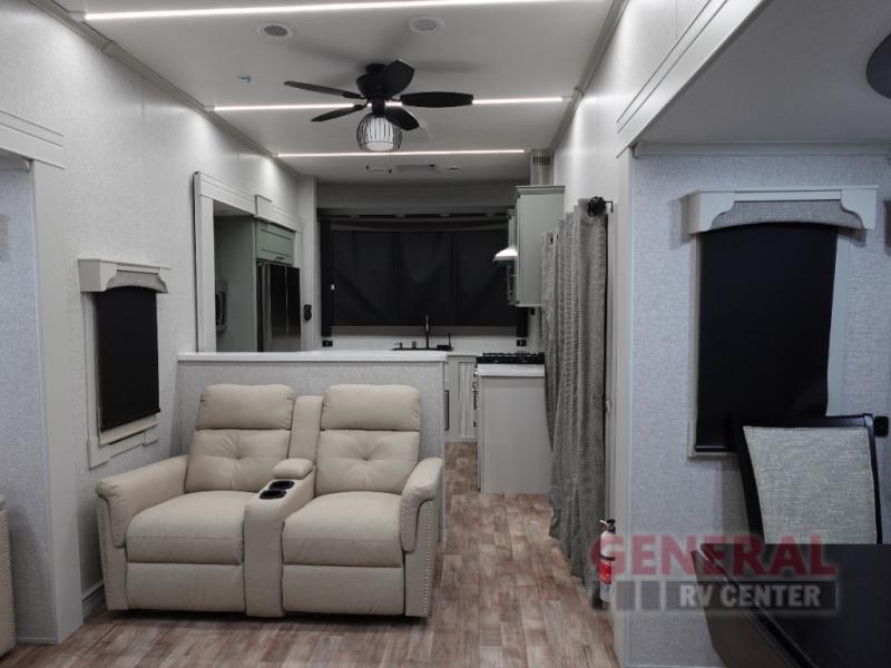 Designed to accommodate up to eight guests, the Regency 3881FKL is ideal for family vacations or entertaining friends. The intelligently designed floor plan includes a master suite, a cozy bunk area, and a convertible living space, ensuring everyone has a comfortable place to rest. The interior is adorned with high-quality finishes and modern amenities, including a fully equipped kitchen, a luxurious bathroom, and ample storage space, making it a true home away from home.
