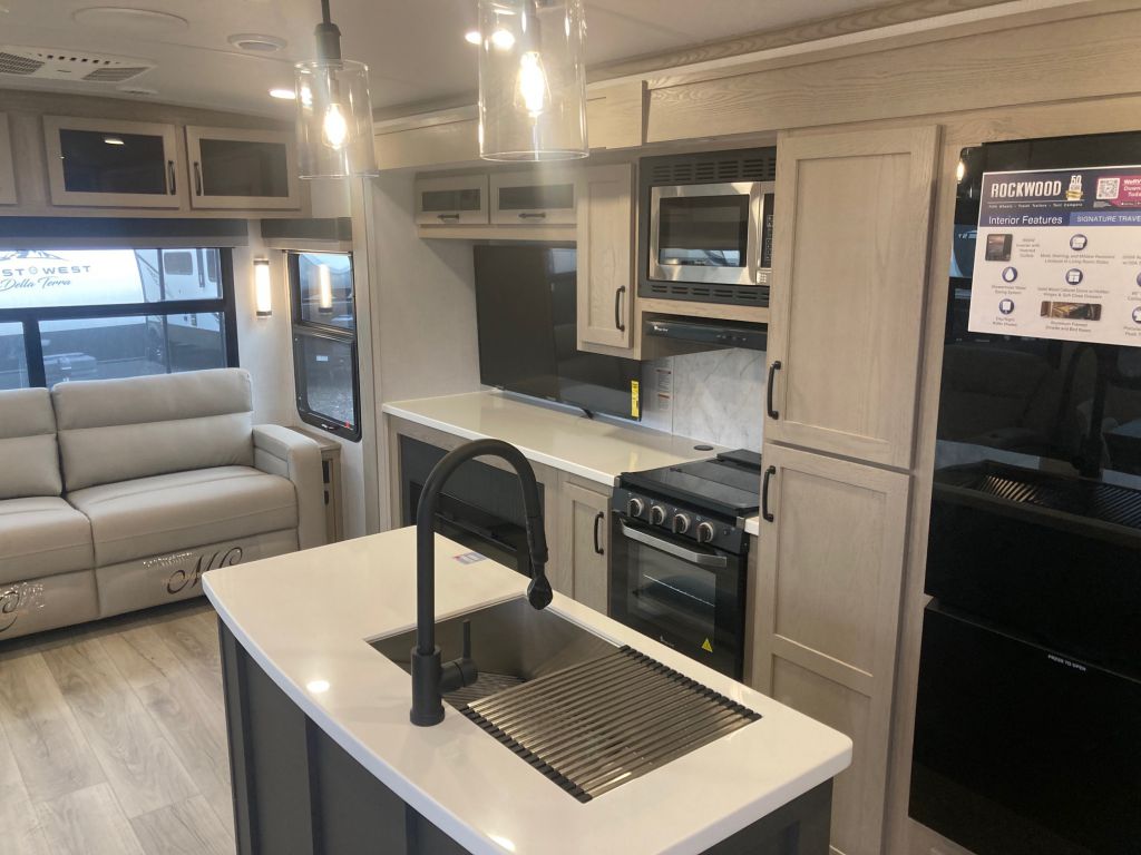 The ROCKWOOD Signature 8337RL is thoughtfully designed to accommodate up to six guests, ensuring a comfortable and restful experience for family and friends. The well-appointed living area features premium furnishings and state-of-the-art amenities, creating a welcoming atmosphere for all. The kitchen is equipped with modern appliances and ample storage, making meal preparation a breeze. The sleeping quarters are designed with comfort in mind, offering plush bedding and privacy for a restful night's sleep.