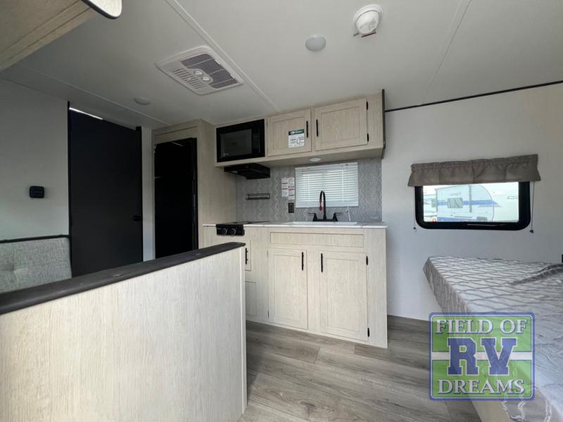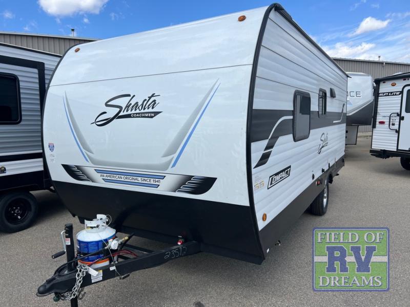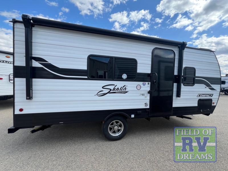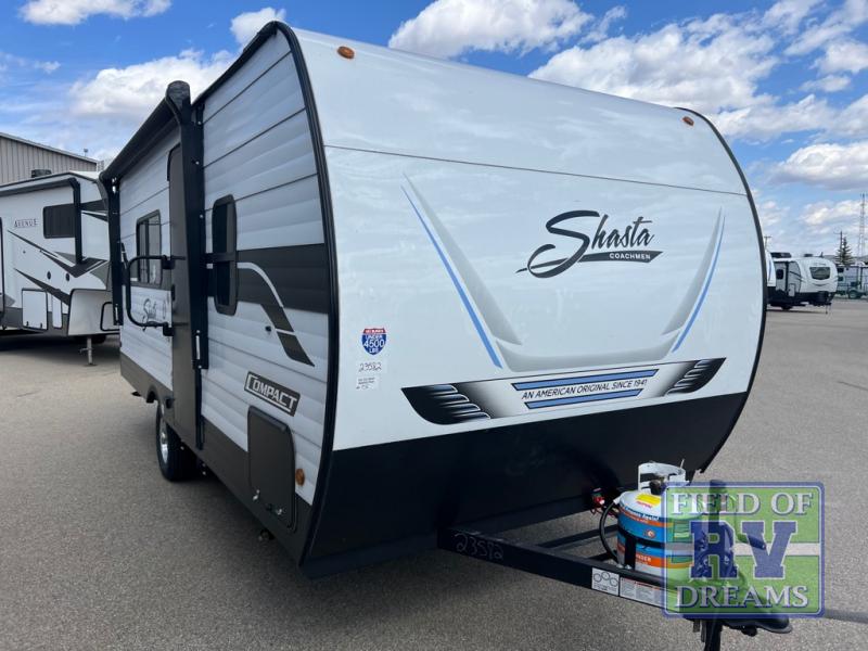 Inside, the Shasta Compact 18FQ is thoughtfully designed to maximize space and functionality. It comfortably sleeps up to three people, making it perfect for small families or couples. The cozy sleeping area, efficient kitchenette, and well-appointed bathroom ensure you have everything you need for a comfortable stay. The interior is crafted with high-quality materials and modern finishes, providing a stylish and inviting atmosphere. Whether you're preparing a meal or unwinding after a day of exploration, this travel trailer offers the perfect setting.