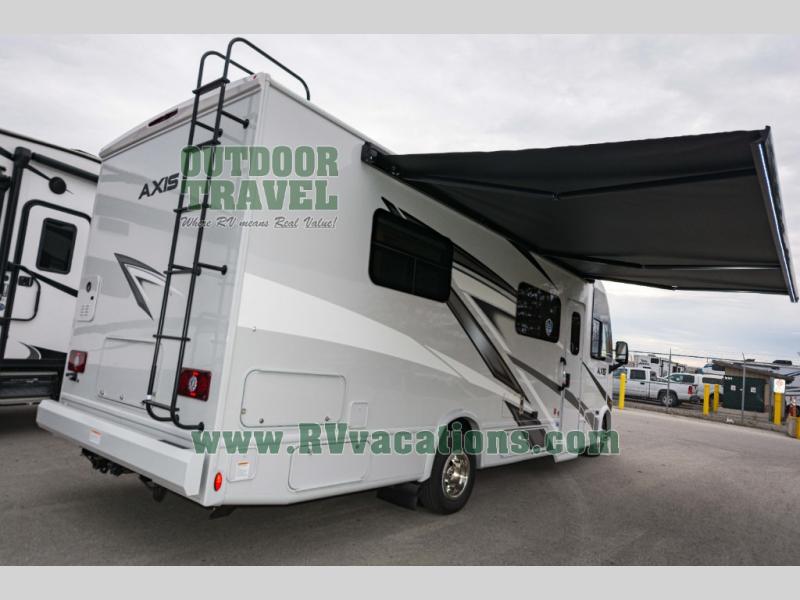 Introducing the 2025 Thor Motor Coach Axis 26.1 Class A, a sophisticated blend of comfort and functionality designed for the discerning traveler. This state-of-the-art RV is engineered to elevate your road adventures with its sleek design and robust features. Measuring an impressive 23 feet in length, the Axis 26.1 offers a compact yet spacious environment, perfect for navigating both open highways and cozy campsites with ease.