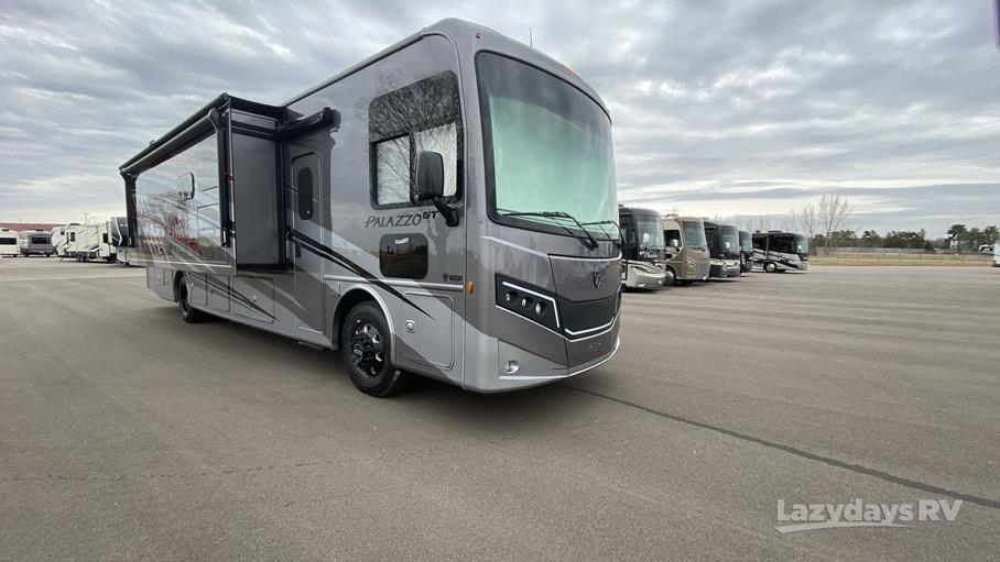 The Palazzo GT 37.5 features three strategically designed slide-outs, expanding the living space to provide a truly spacious interior. This RV comfortably accommodates up to six people, making it ideal for family vacations or trips with friends. The thoughtfully designed floor plan includes a master bedroom, a convertible sofa bed, and a dinette that transforms into a sleeping area, ensuring everyone has a comfortable place to rest. The interior is adorned with high-quality finishes and modern amenities, creating a welcoming and sophisticated atmosphere.