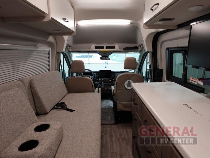 Inside, the RV comfortably sleeps two, providing a cozy retreat after a day of exploration. The well-appointed living area includes a fully equipped kitchenette, ample storage solutions, and a versatile seating arrangement that transforms into a comfortable sleeping space. Every detail of the Palladium 1910 is crafted to enhance your travel experience, offering a harmonious blend of functionality and elegance. Experience the freedom of the open road with the 2025 Thor Motor Coach Palladium 1910 Class B, where every journey becomes a memorable adventure.