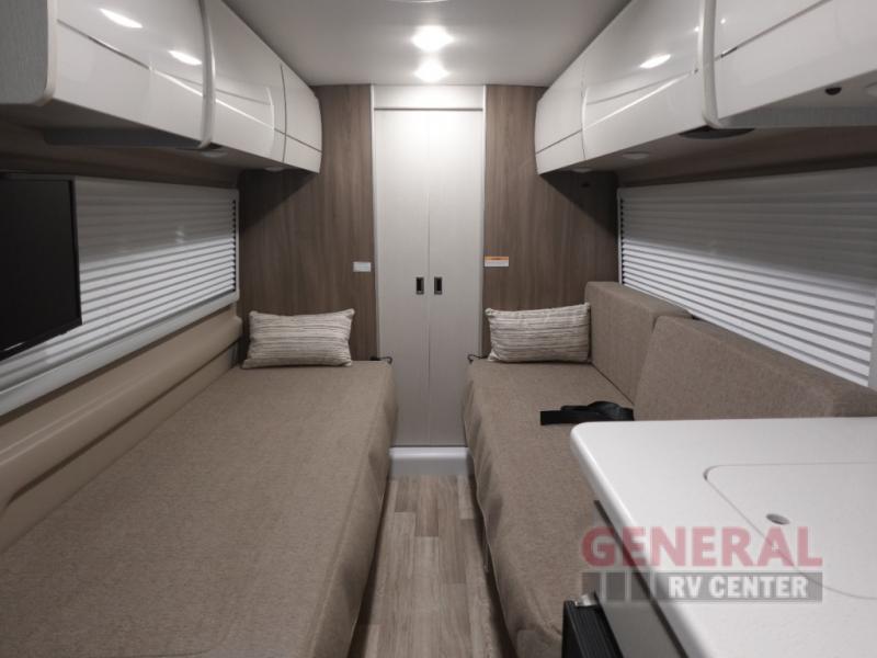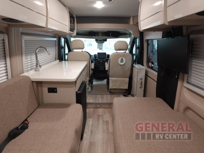 This RV is equipped to sleep two comfortably, making it perfect for romantic getaways or solo expeditions. The interior is thoughtfully designed with high-quality materials and finishes, ensuring a cozy and inviting atmosphere. The well-appointed kitchen features modern appliances, allowing you to prepare meals with ease. Ample storage solutions are integrated throughout, ensuring you have plenty of space to stow your essentials for the journey ahead.