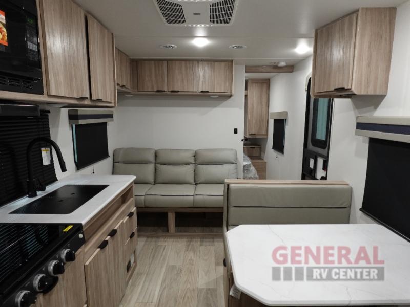 Measuring approximately 24 feet in length, the Access 26BH offers a spacious interior that maximizes every inch for functionality and relaxation. Inside, you'll find a well-appointed living area with a cozy dinette that easily converts into a sleeping space, alongside a fully equipped kitchen featuring modern appliances and ample storage. The dedicated sleeping quarters include a comfortable queen bed and bunk beds, ensuring everyone has a restful night's sleep after a day of adventure.