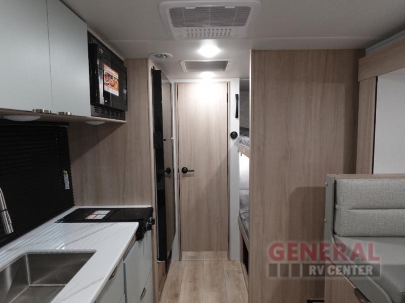 Step inside to find a thoughtfully designed interior that can comfortably sleep up to five people, making it perfect for family getaways or trips with friends. The single slide-out expands your living area, providing extra room to relax and enjoy your surroundings. The smart layout includes a cozy sleeping area, a fully equipped kitchenette, and a modern bathroom, ensuring you have all the comforts of home on the road. High-quality materials and finishes throughout the trailer create an inviting atmosphere that enhances your travel experience.