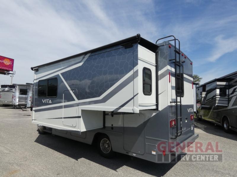 The Vita 24P features a single slide-out that significantly enhances the living space, providing ample room for relaxation and entertainment. Designed to accommodate up to five people comfortably, this RV is perfect for family getaways or trips with friends. The intelligently designed interior includes a cozy sleeping area, a fully equipped kitchen, and a functional bathroom, ensuring that all your needs are met while on the road.