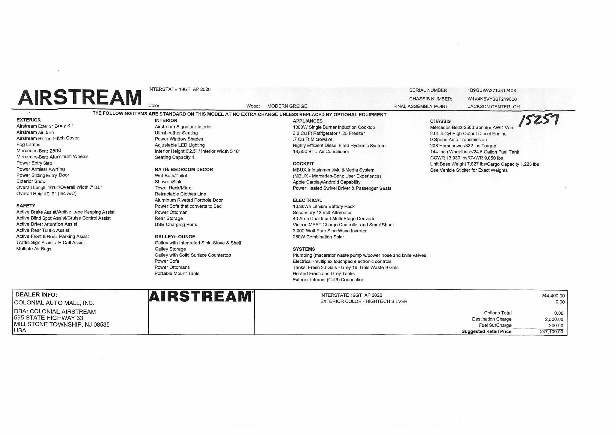 Weighing in at 4,109 kilograms, the Airstream Interstate Nineteen is built for both durability and performance. Its robust construction and advanced engineering make it a reliable companion for all your adventures. Whether you're embarking on a cross-country journey or a weekend escape, this RV offers the perfect blend of comfort, convenience, and capability. Don't miss the opportunity to own a piece of Airstream's legendary craftsmanship and innovation. Experience the ultimate in mobile living with the 2026 Airstream Interstate Nineteen 19GT AWD Class B RV. Your next adventure awaits!