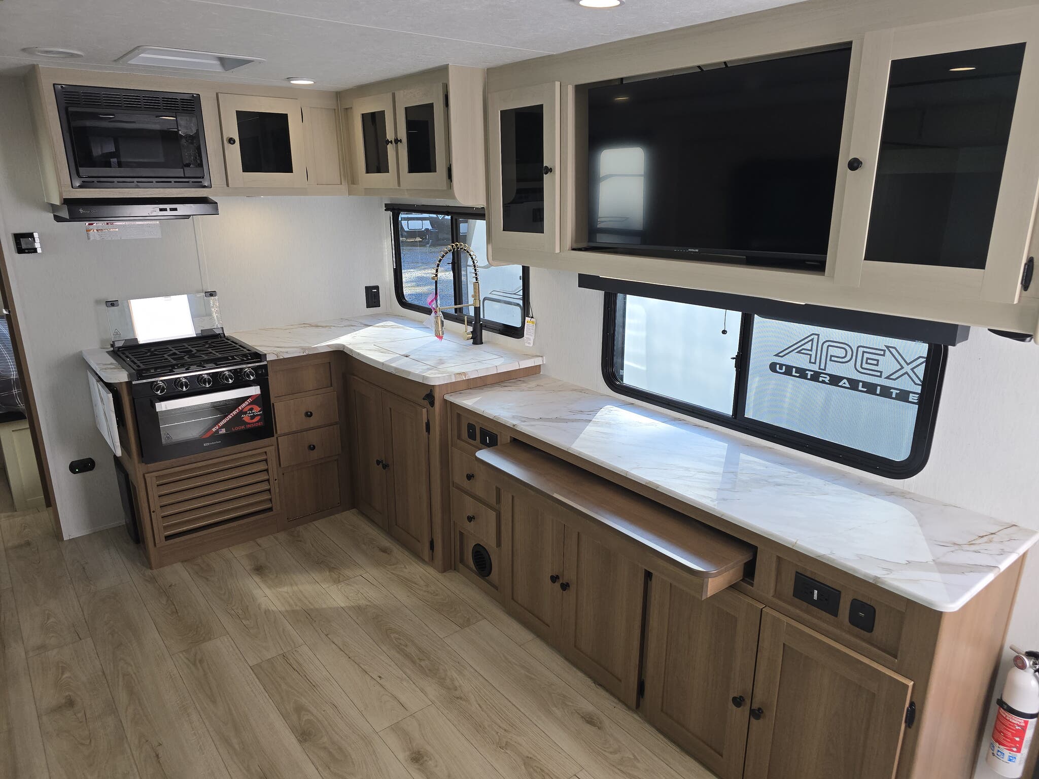 Weighing in at just 3,475 kilograms, the Apex Ultra-Lite is designed for easy towing, making it a breeze to hitch up and hit the road. Its lightweight build doesn't compromise on durability or style, offering a sleek design that turns heads wherever you go. Inside, you'll find a well-appointed living space with all the essentials: a comfy sleeping area, a fully-equipped kitchenette, and a stylish bathroom. It's the perfect setup for those who love to explore without sacrificing the comforts of home.