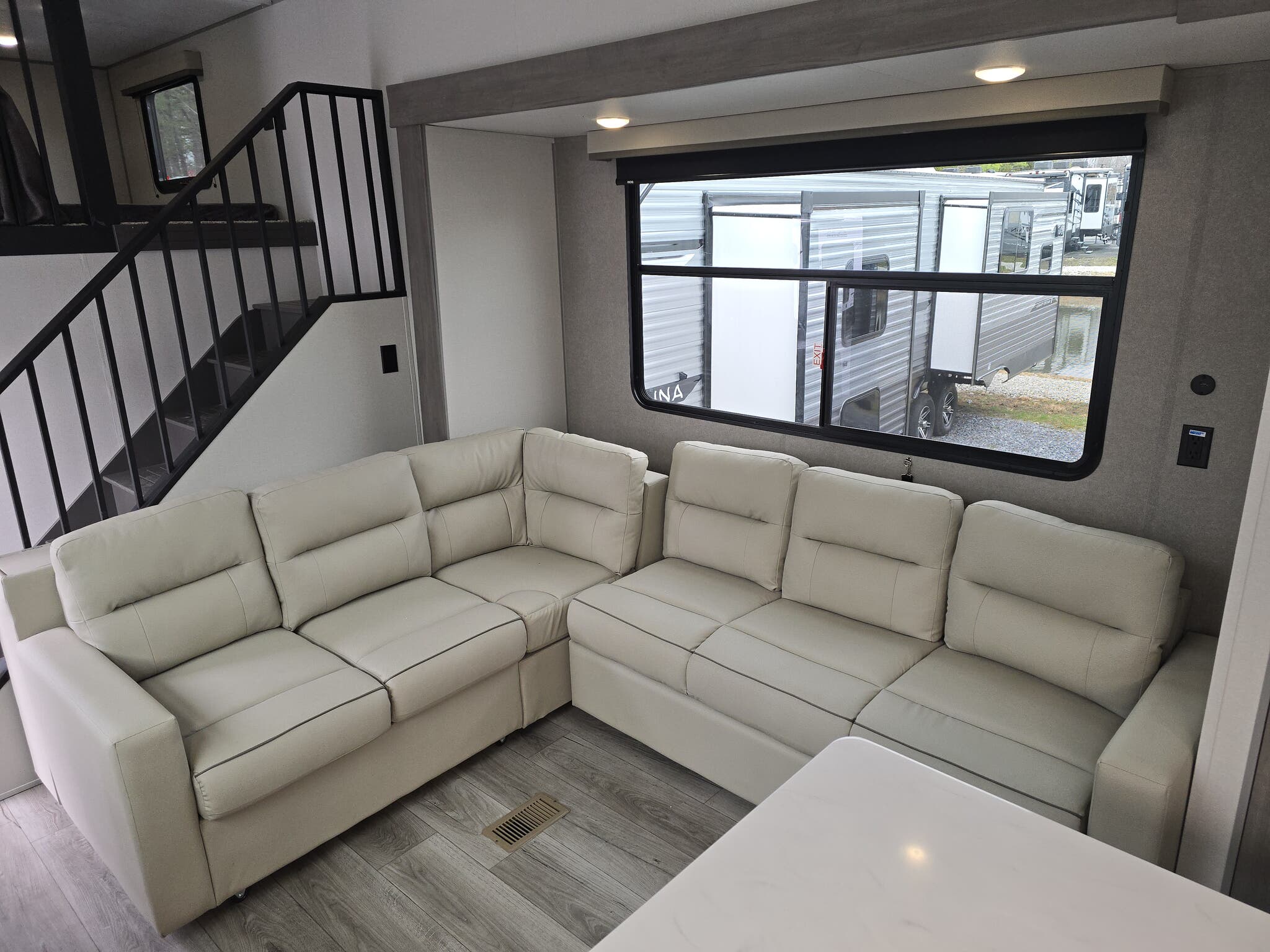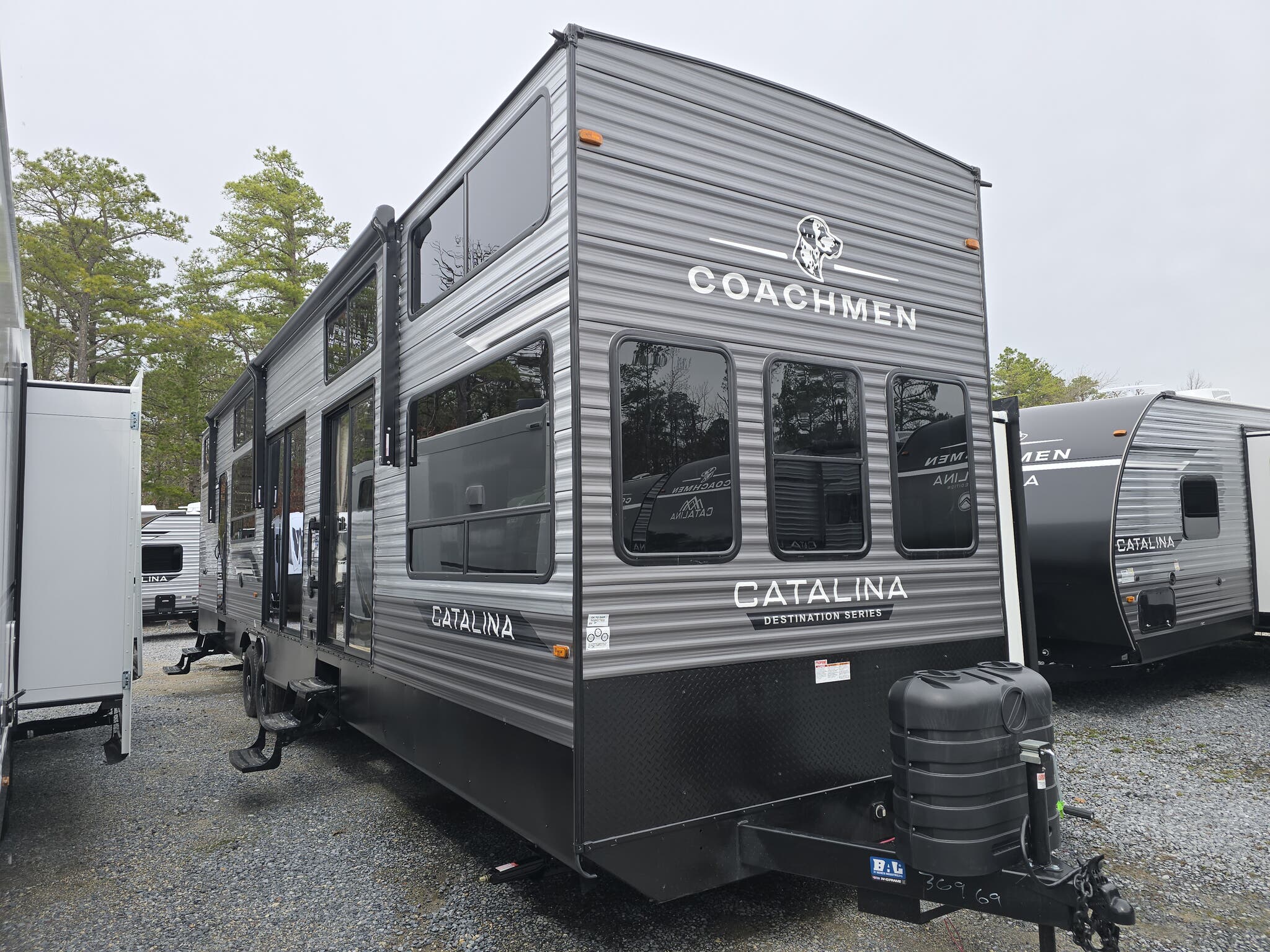 The Catalina 42CONDO features two expansive slide-outs that significantly enhance the living space, providing a roomy and inviting atmosphere. Inside, you'll find accommodations to comfortably sleep up to nine people, making it perfect for large families or hosting guests. The thoughtfully designed interior includes a well-appointed kitchen, cozy living area, and a luxurious master suite, ensuring everyone has their own space to unwind. The RV's robust construction, weighing in at 6,454 kilograms, ensures stability and durability, allowing you to travel with confidence.