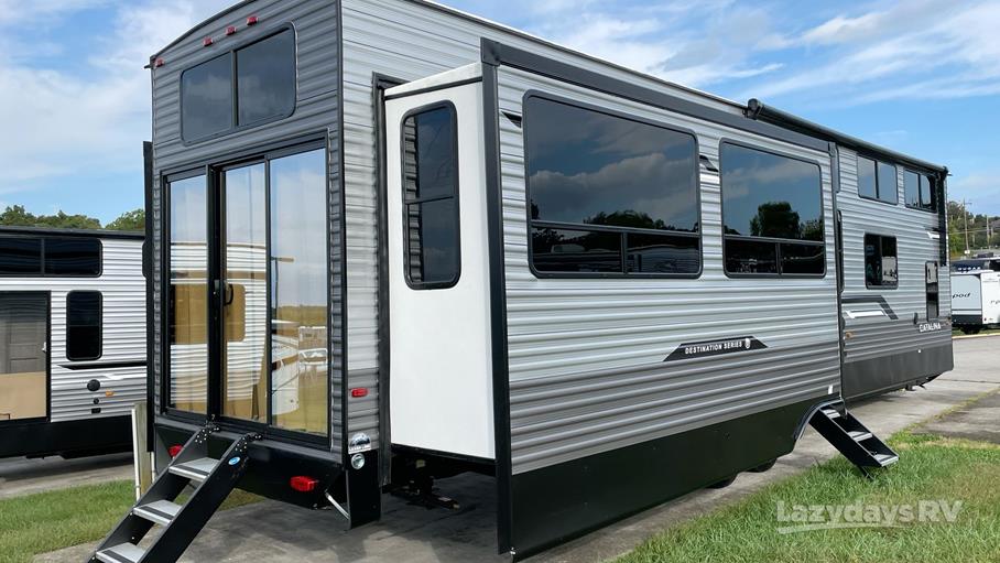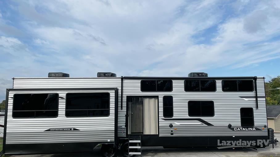Introducing the 2026 Coachmen Catalina Destination Series 43CONDO Travel Trailer, a pinnacle of luxury and comfort for the discerning traveler. This meticulously crafted RV offers an expansive living space with its two strategically designed slide-outs, ensuring ample room for relaxation and entertainment. Measuring an impressive 38 feet in length, this travel trailer is engineered to provide a home-like experience on the road, making it an ideal choice for extended stays or full-time living.