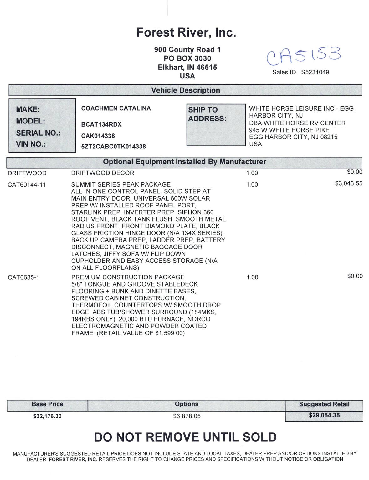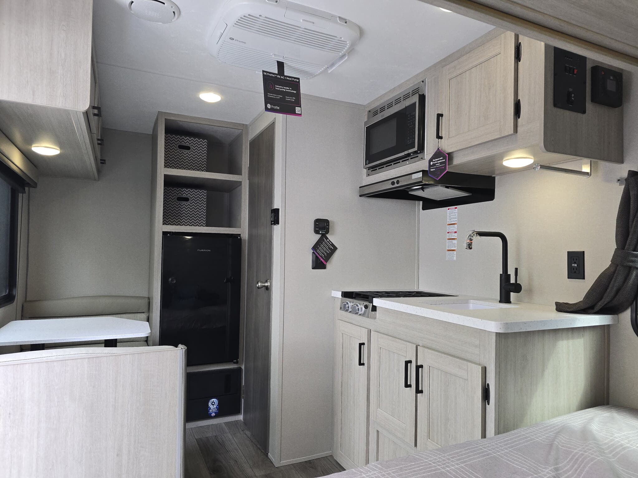 Inside, the Catalina Summit Series 7 134RDX is thoughtfully designed to maximize space and comfort. It comfortably sleeps two, providing a cozy sanctuary for rest and relaxation after a day of exploration. The interior features high-quality finishes and modern amenities, creating an inviting atmosphere that feels like a home away from home. The well-appointed kitchen is equipped with essential appliances, allowing you to prepare meals with ease, while the dining area offers a comfortable space to enjoy them.