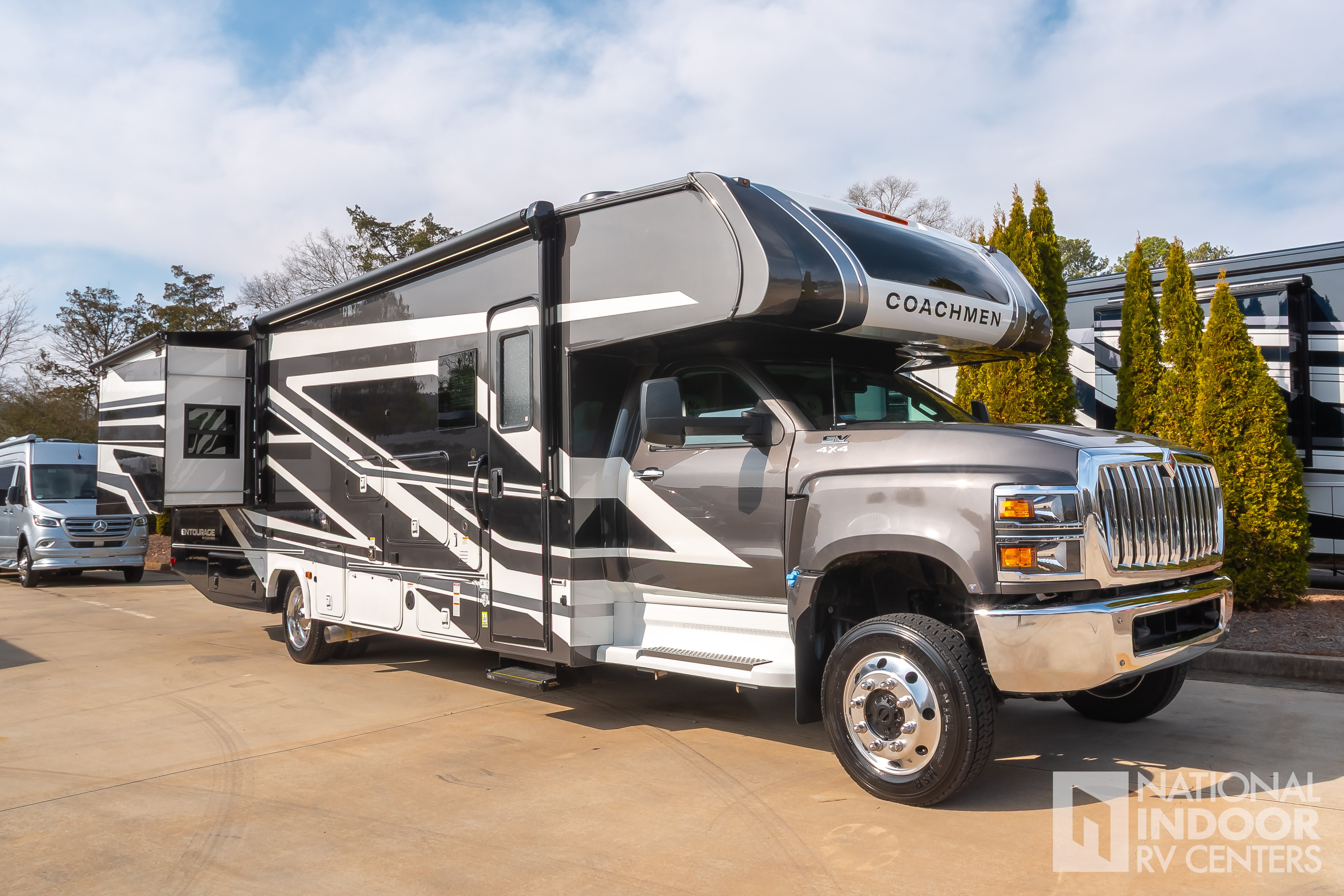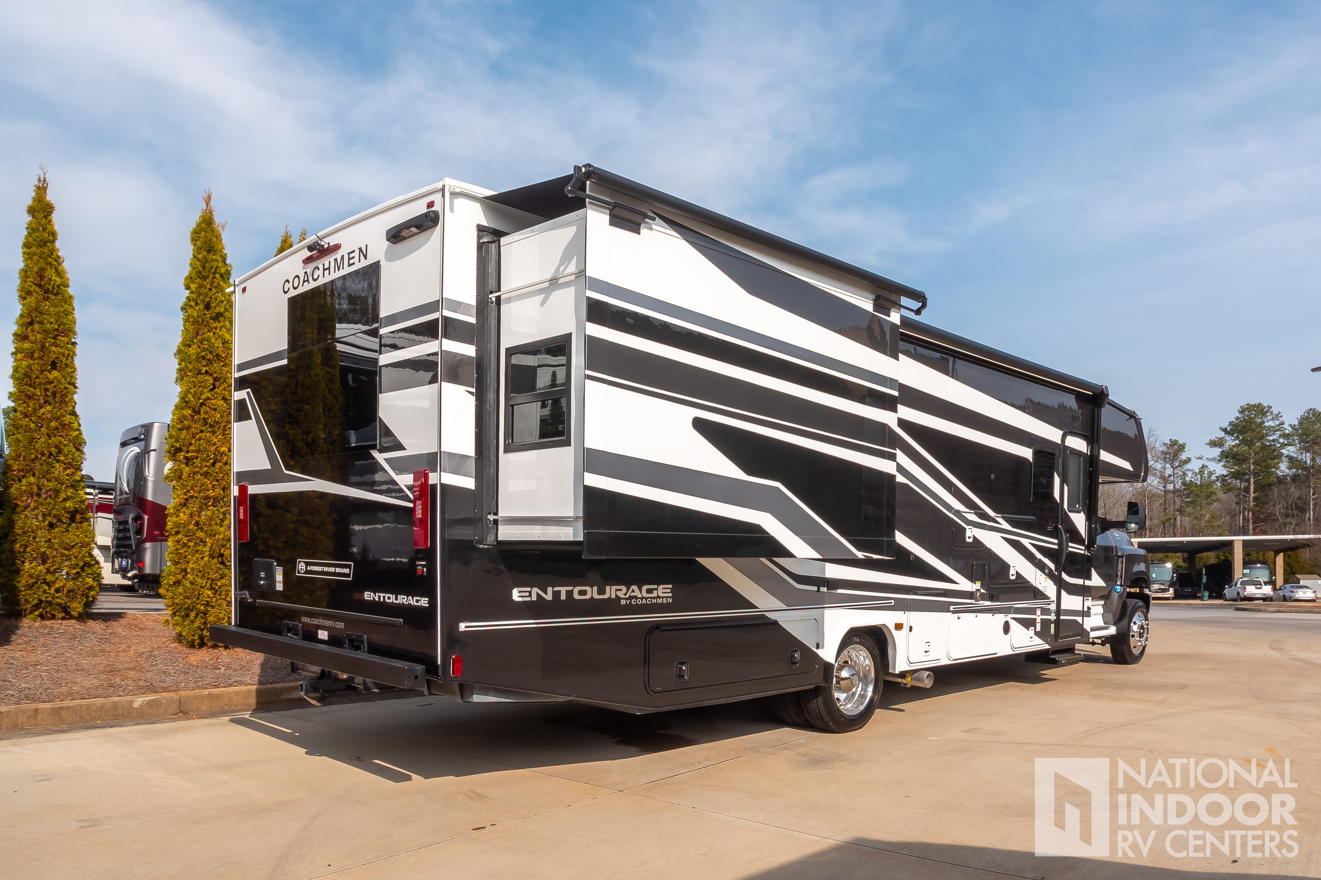 Introducing the 2026 Coachmen Entourage 340BHI Class C RV, a perfect blend of comfort and functionality for your next adventure. This modern RV is designed to provide a home-like experience on the road, featuring two spacious slide-outs that significantly enhance the living space, ensuring you and your family have plenty of room to relax and enjoy.