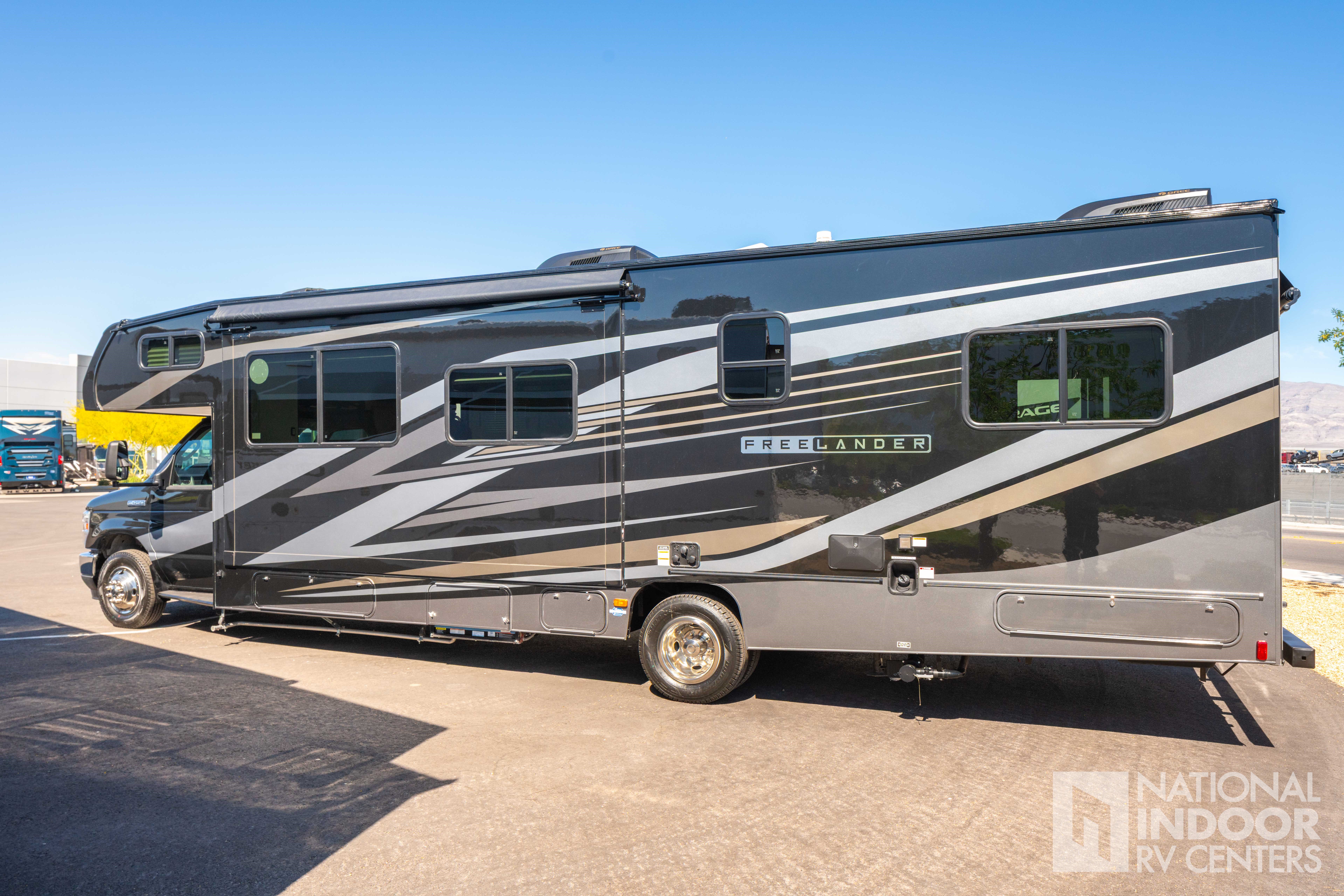Measuring approximately 28 feet in length, the Freelander 30RS is the perfect size for navigating both highways and scenic byways. The cleverly designed interior maximizes every inch of space, featuring a fully equipped kitchen with modern appliances, a cozy dining area, and a spacious living room that invites you to unwind after a day of exploration. The sleeping quarters are equally impressive, offering a comfortable bed and plenty of storage, ensuring you have everything you need for a restful night's sleep.