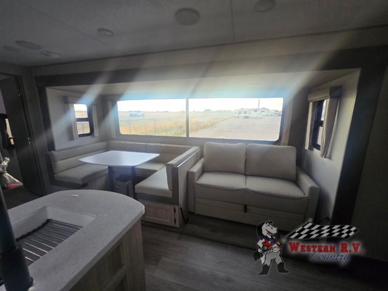 Step inside to discover a thoughtfully designed interior that maximizes space and convenience. The Apex Nano 181RB features a well-appointed living area with high-quality furnishings and finishes, ensuring a comfortable and inviting atmosphere. The kitchen is equipped with modern appliances, including a refrigerator, microwave, and a two-burner cooktop, providing all the essentials for preparing meals on the go. The spacious bathroom, complete with a shower and ample storage, adds to the convenience, making this travel trailer a true home away from home.