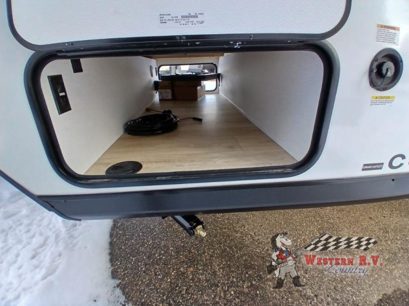 Step inside to find a cleverly designed interior that maximizes space and functionality. The single slide-out expands your living area, providing ample room to relax and unwind after a day of exploration. With sleeping accommodations for up to three people, this RV is perfect for couples or small families. The cozy sleeping area ensures a restful night, while the well-appointed kitchen and dining space make meal preparation and dining a breeze.
