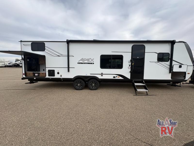 The Apex Ultra-Lite 300BHS features two slide-outs, significantly enhancing the interior space to ensure a comfortable stay for up to seven occupants. The intelligently designed floor plan includes a master bedroom, a cozy bunkhouse, and a convertible dinette, providing versatile sleeping arrangements for families or groups. The interior is adorned with high-quality finishes and modern amenities, ensuring a home-like atmosphere wherever your journey takes you. The kitchen is equipped with state-of-the-art appliances, allowing you to prepare meals with ease, while the spacious living area is perfect for relaxation and entertainment.