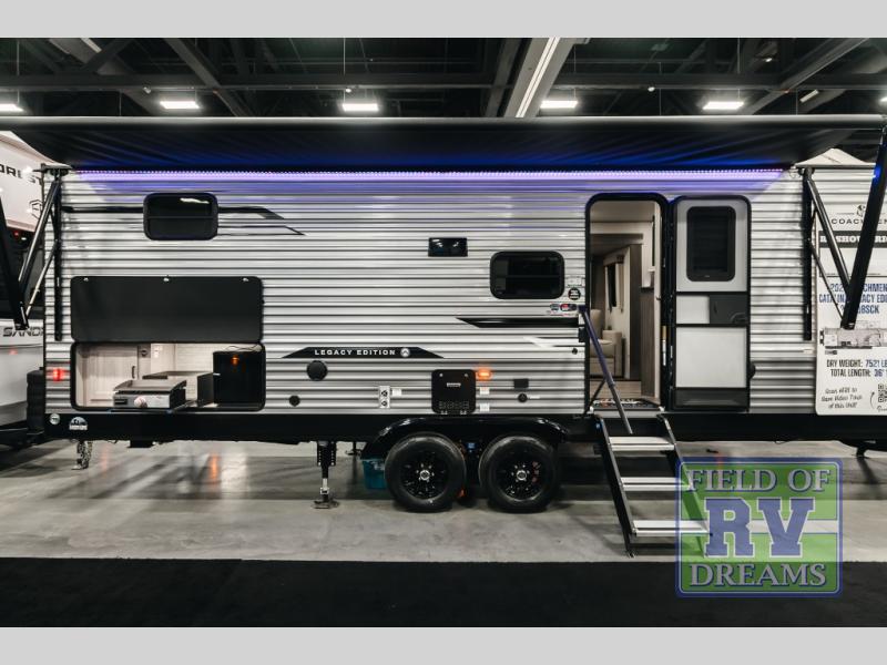 The Catalina Legacy Edition features a single slide-out that significantly enhances the living area, providing a spacious environment for up to 10 occupants. Inside, you'll find a thoughtfully designed layout that includes a fully equipped kitchen, a cozy dining area, and comfortable sleeping arrangements. The master bedroom offers privacy and comfort, while the additional sleeping spaces ensure everyone has a place to rest. The interior is crafted with high-quality materials and finishes, reflecting a commitment to excellence and durability.