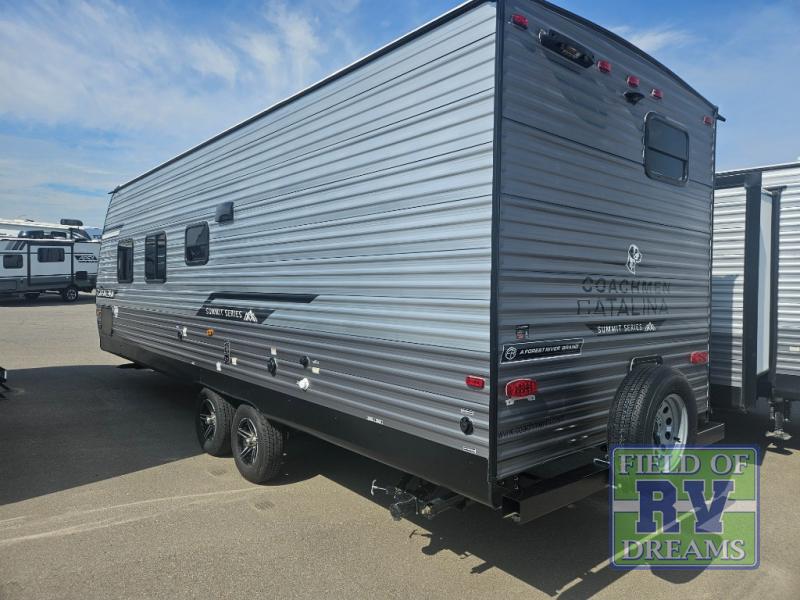 But that's not all! The Catalina Summit Series 8 is packed with extras to enhance your camping experience. Enjoy the great outdoors with the power awning and exterior speakers, perfect for those evenings under the stars. Plus, with ample storage both inside and out, you can bring along all your gear and essentials. Ready to hit the road? This travel trailer is your ticket to endless exploration and fun. Don't miss out on the chance to own this fantastic RV—it's time to make your travel dreams a reality!