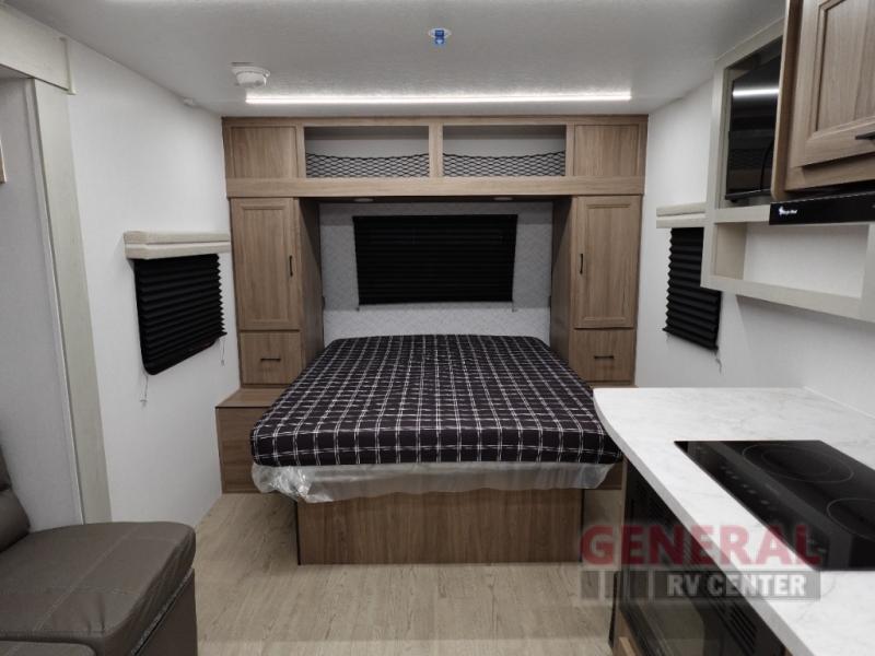 The Freedom Express Select 19SE features a single slide-out, ingeniously expanding the living area to maximize space and comfort. Inside, you'll find accommodations to sleep up to three people, making it an excellent choice for intimate getaways or solo explorations. The interior is thoughtfully designed with high-quality materials and finishes, ensuring a cozy and inviting atmosphere. The kitchen is equipped with modern appliances, allowing you to prepare meals with ease, while the dining area offers a comfortable space to enjoy them.