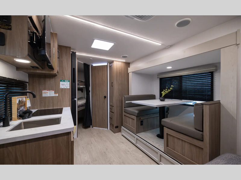 The Freedom Express Select 21SE features one slide-out, which significantly expands the living area, providing ample space for relaxation and entertainment. The interior is meticulously designed to maximize comfort and convenience, featuring high-quality furnishings and modern amenities. The sleeping arrangements are versatile, ensuring a restful night's sleep for everyone on board. Whether you're embarking on a weekend getaway or an extended road trip, this travel trailer offers the perfect home away from home.