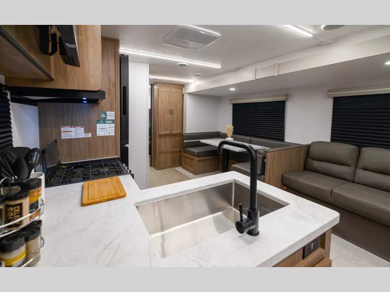 Designed to accommodate up to 11 occupants, this RV is ideal for large families or groups seeking a comfortable and convenient travel solution. The interior layout is crafted to maximize space and functionality, featuring multiple sleeping arrangements that include cozy bunks, a convertible dinette, and a plush master suite. The kitchen is equipped with modern appliances and ample storage, making meal preparation a breeze, while the spacious bathroom ensures comfort and privacy.