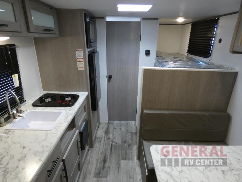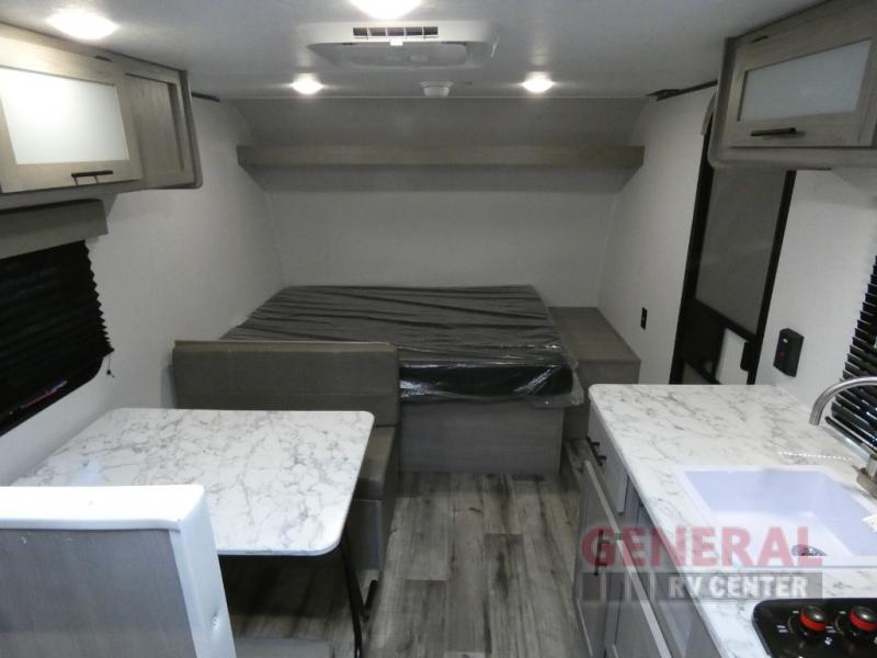Inside, you'll find a cozy setup that can comfortably sleep up to 5 people. Whether you're traveling with family or friends, everyone will have a comfy spot to rest after a day of exploring. The smart layout maximizes space, offering a functional kitchen, a snug dining area, and plenty of storage for all your gear. The Aspen Trail Mini is all about making the most of every inch, ensuring you have everything you need without feeling cramped.