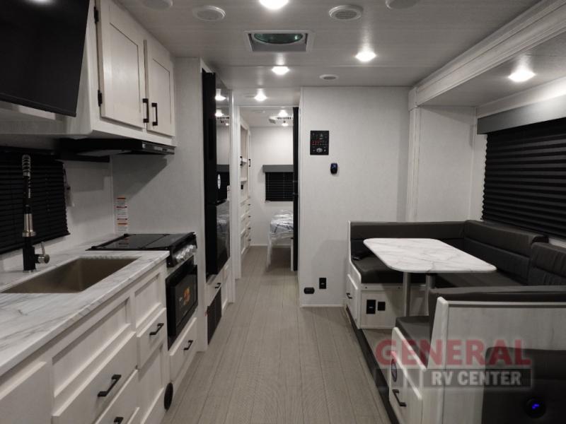 Equipped with two slide-outs, this RV expands to create a generous living area, accommodating up to six sleepers with ease. The intelligently designed floor plan includes a well-appointed kitchen, complete with modern appliances and ample storage, making meal preparation a breeze. The cozy sleeping quarters are complemented by a stylish bathroom, ensuring convenience and privacy on the road. Every detail of the Entrada 2950OK is crafted to enhance your travel experience, from the plush seating arrangements to the high-quality finishes throughout.