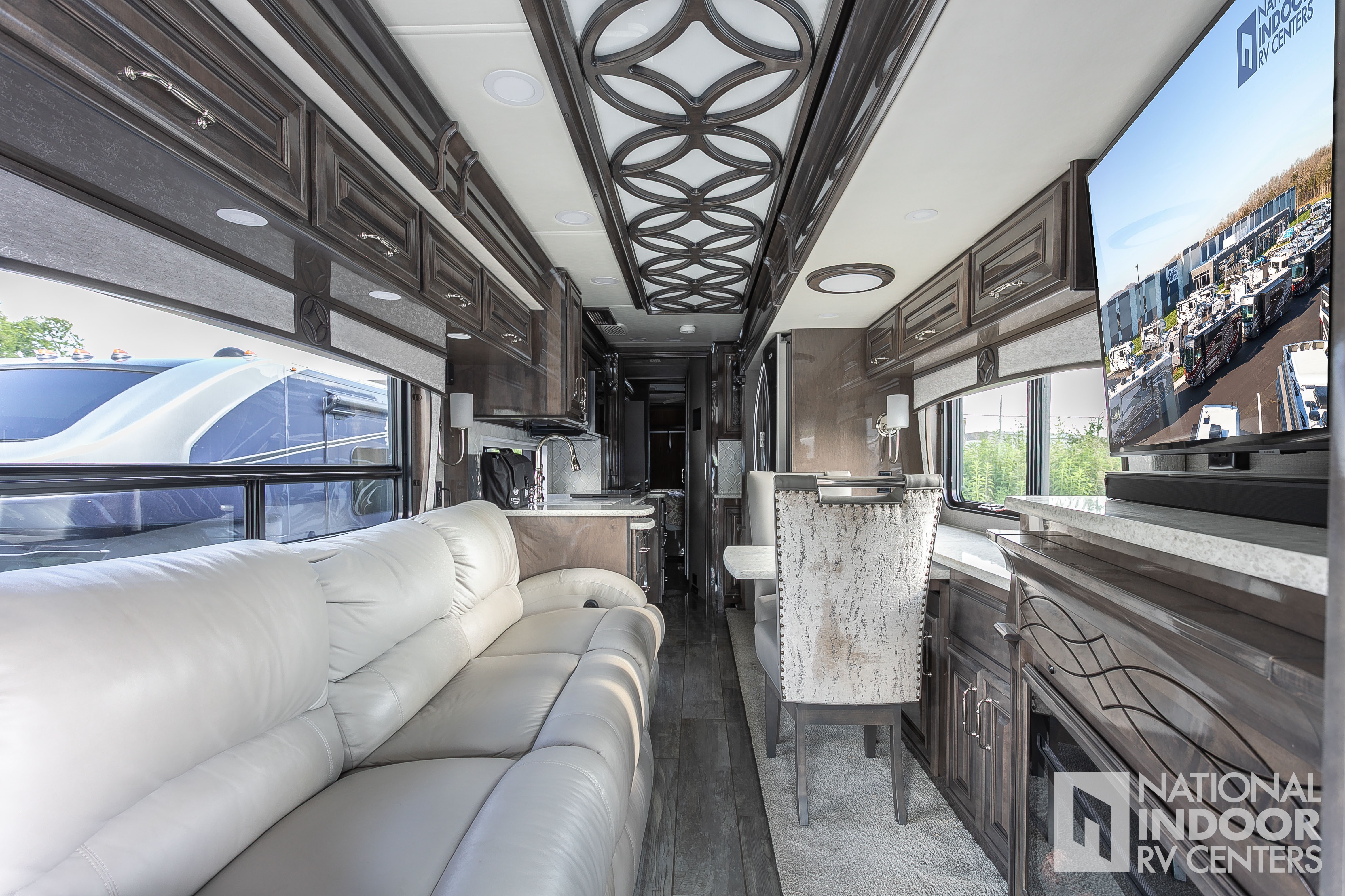 Step inside and be amazed by the four slide-outs that transform the interior into a roomy oasis. Whether you're parked by the beach or nestled in the mountains, you'll have all the space you need to relax and unwind. The Cornerstone 45D is designed with top-notch craftsmanship and attention to detail, ensuring every journey is as comfortable as it is memorable. Imagine lounging in the plush seating area or cooking up a storm in the fully-equipped kitchen. It's like bringing your home with you, wherever you go!
