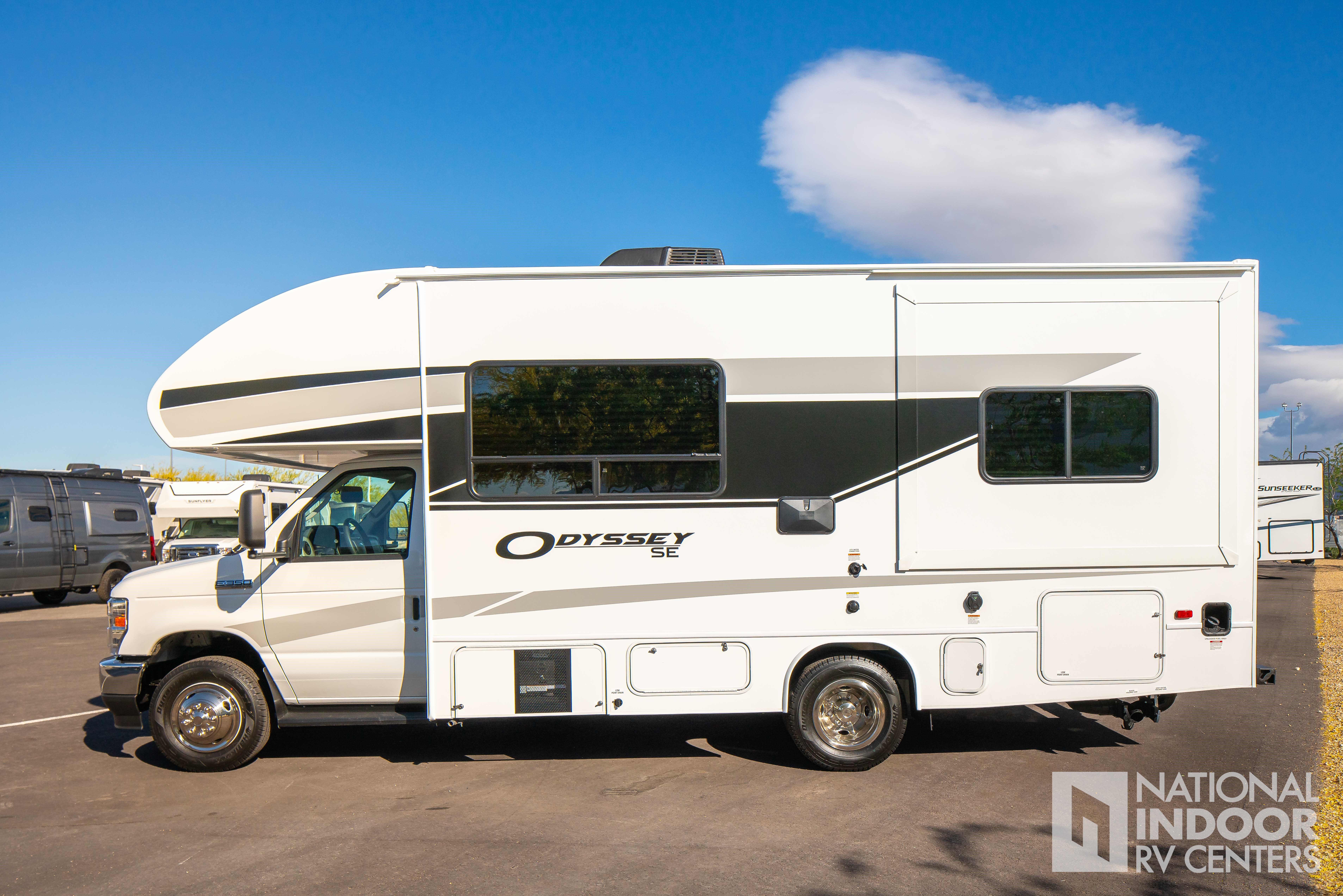 Step inside and be greeted by a thoughtfully designed interior that maximizes every inch of space. The Odyssey SE 22CF features a cozy living area, complete with plush seating and a well-equipped kitchen, perfect for whipping up your favorite meals on the go. The sleeping quarters are designed for restful nights, ensuring you wake up refreshed and ready for new adventures. With modern amenities and stylish finishes, this RV feels like a home away from home.