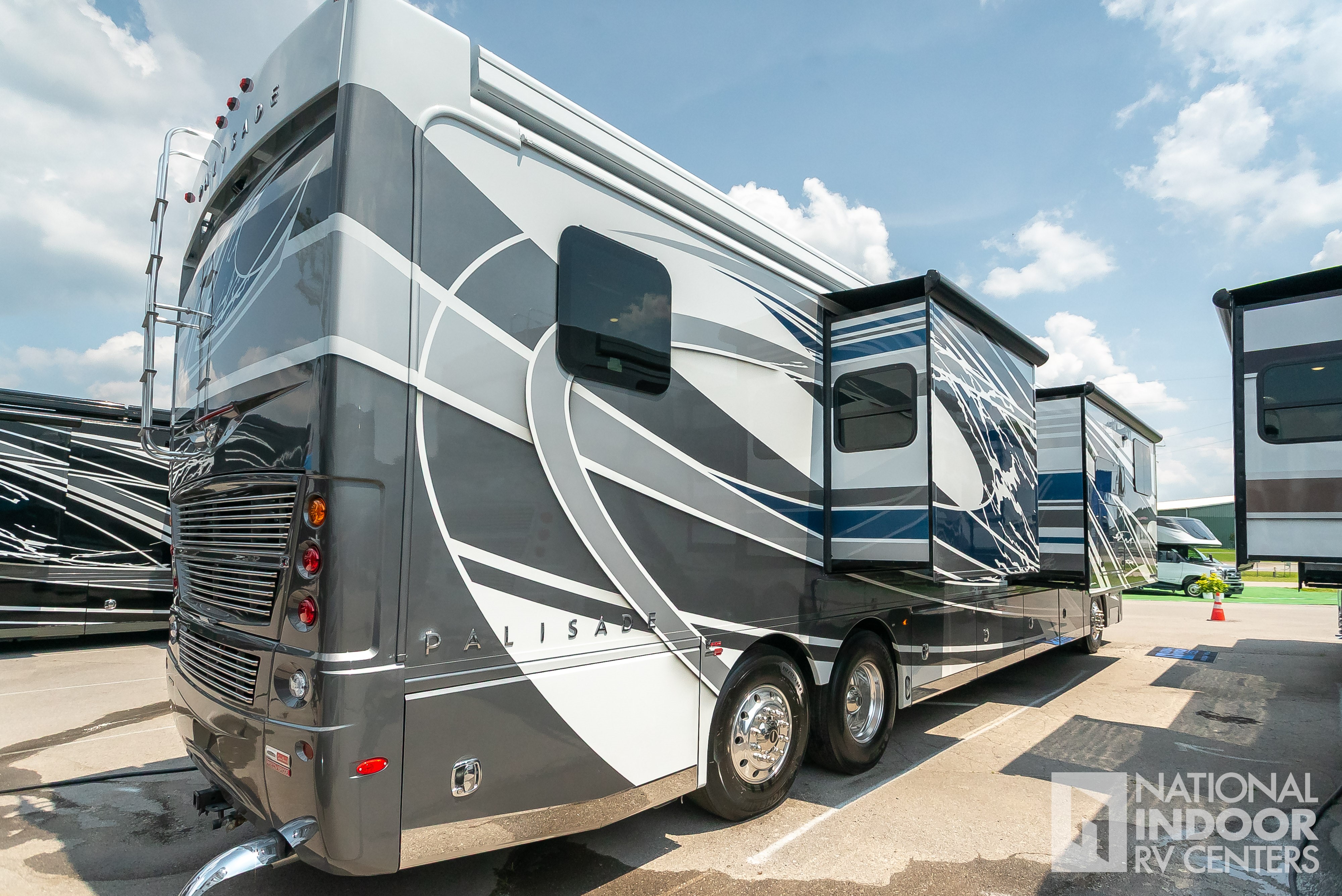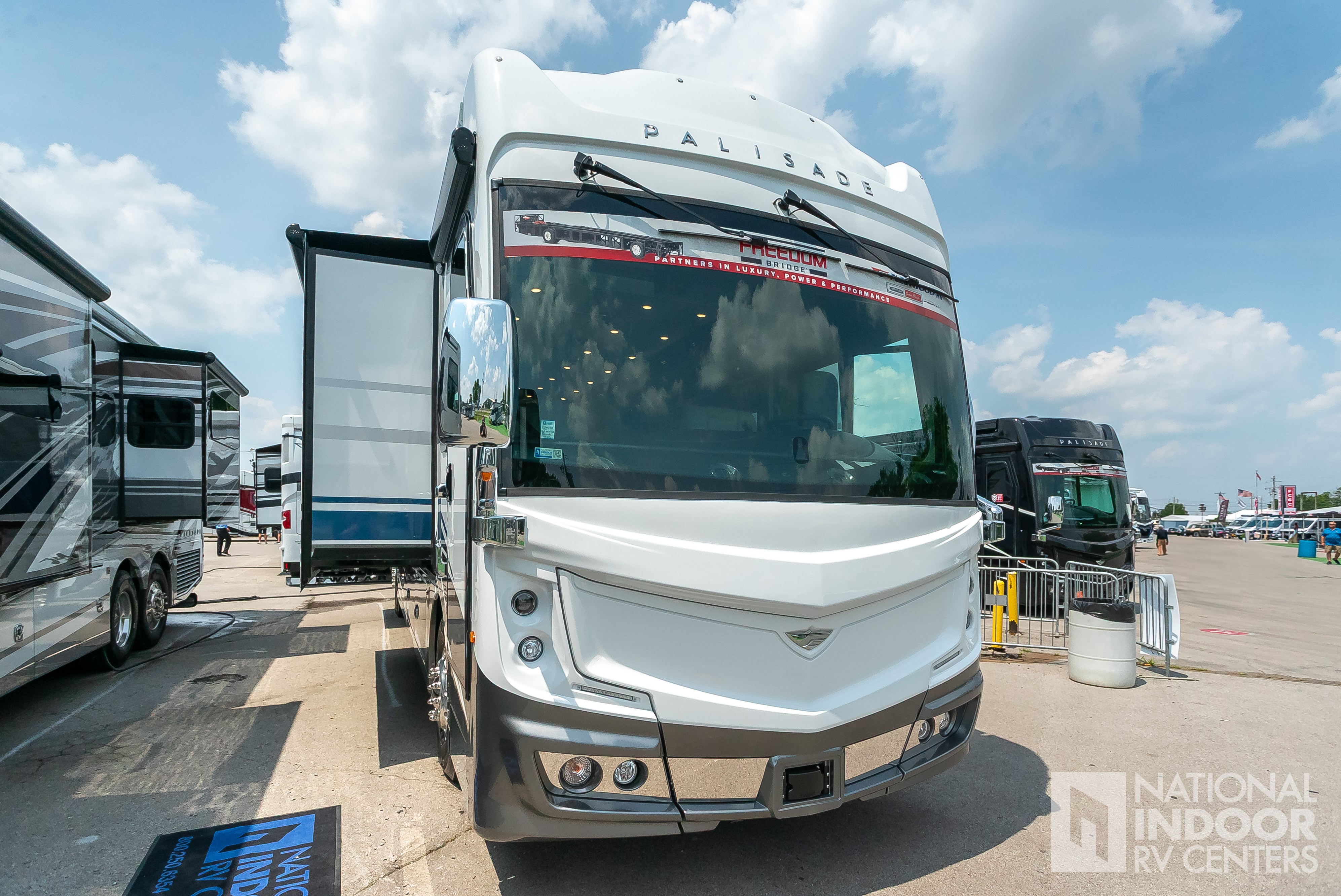 The Fleetwood Palisade 45DS features three slide-outs, significantly expanding your living area to provide a spacious and comfortable environment. Inside, you'll find a beautifully appointed interior with high-end finishes and modern amenities. The well-equipped kitchen includes top-of-the-line appliances, perfect for preparing gourmet meals. The living area is designed for relaxation, with plush seating and a state-of-the-art entertainment system. The master suite offers a tranquil retreat with a luxurious bed and ample storage space.