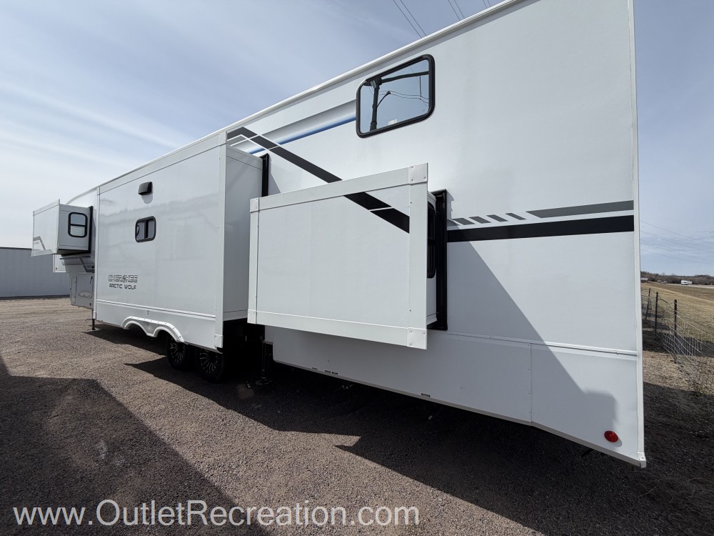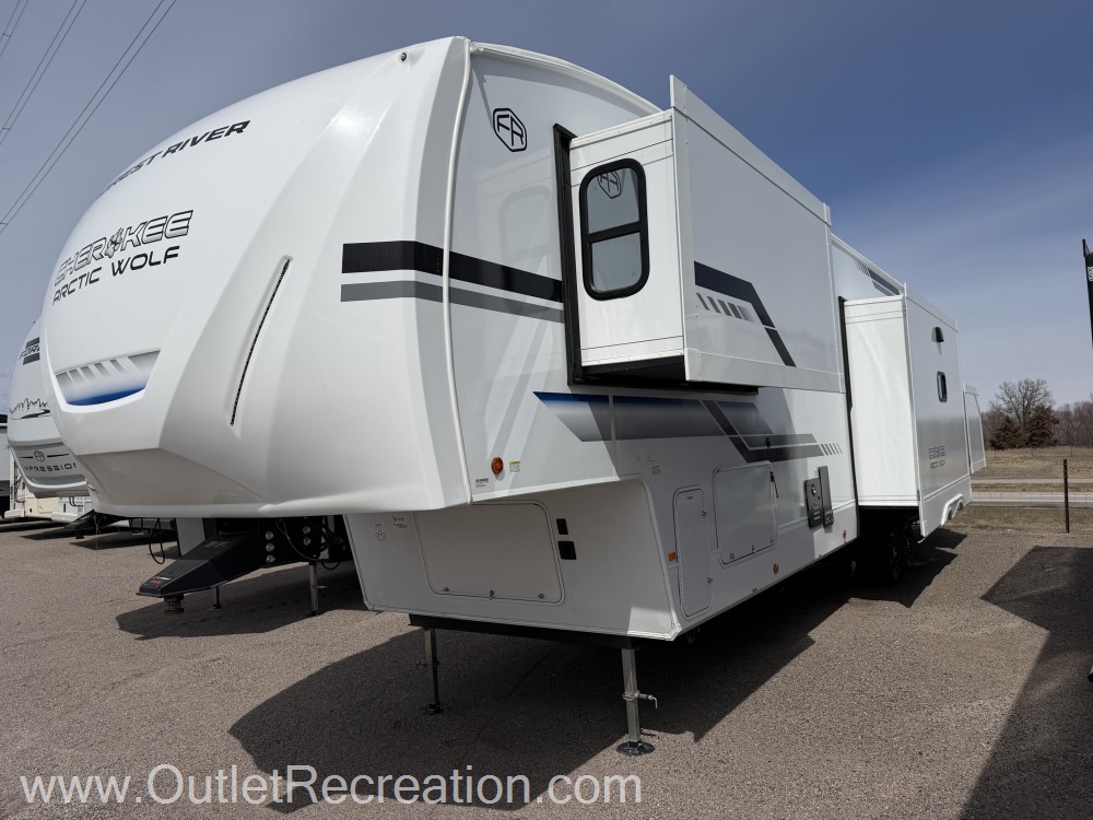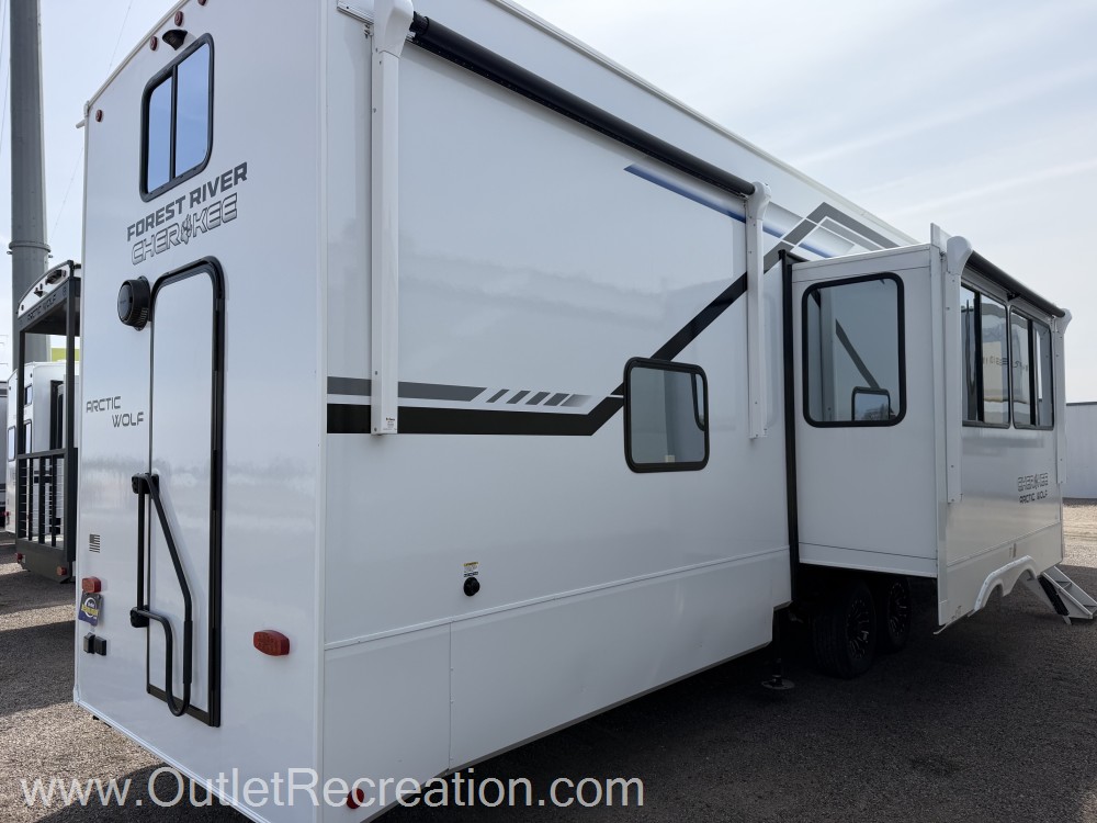 Discover the ultimate blend of luxury and adventure with the 2026 Forest River Cherokee Arctic Wolf 38DST Fifth Wheel. This stunning RV is designed for those who crave the freedom of the open road without sacrificing the comforts of home. With its impressive length of 36 feet and a weight of 5,774 kilograms, this fifth wheel is both spacious and easy to tow, making it the perfect companion for your next journey.