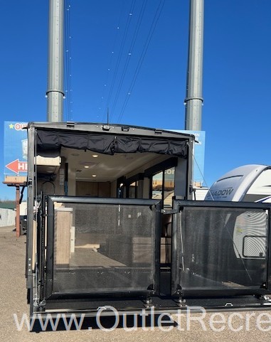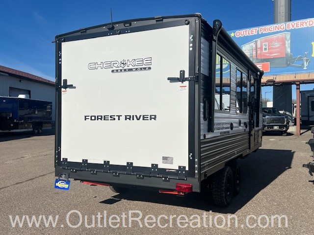 Inside, the Cherokee Grey Wolf 18RR offers a thoughtfully designed living space that comfortably sleeps up to three people. The interior layout maximizes every square meter, providing a cozy sleeping area, a well-equipped kitchenette, and a functional bathroom. The toy hauler design allows you to bring along your favorite outdoor equipment, whether it's bikes, kayaks, or ATVs, ensuring that your adventures are as thrilling as they are relaxing. The durable construction and high-quality materials used throughout the RV promise longevity and reliability, even in the most rugged terrains.