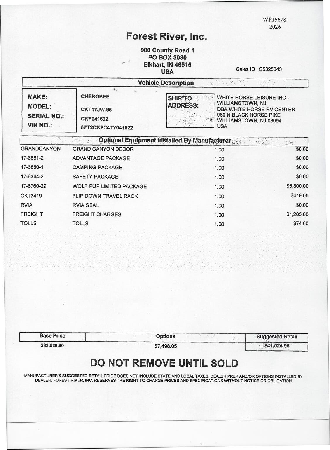 2026 Forest River Cherokee Wolf Pup 17JW