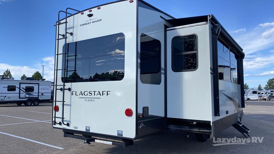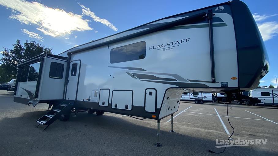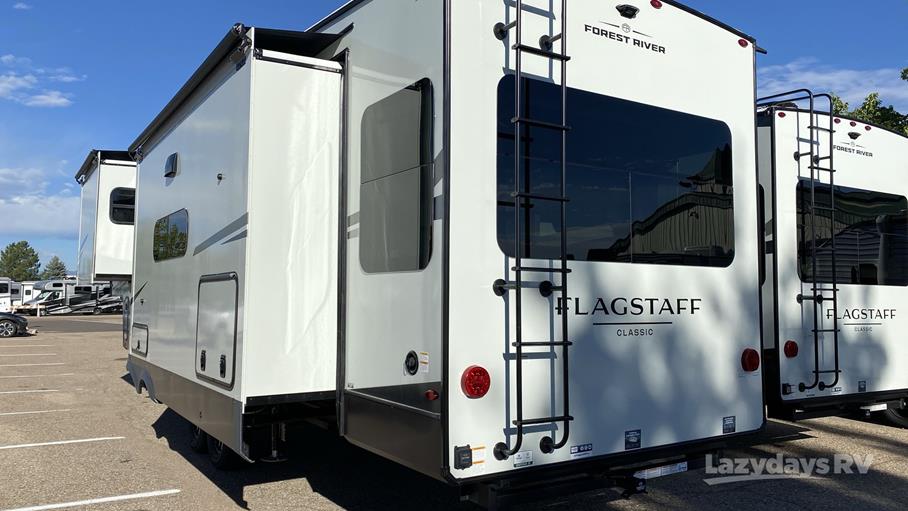 Introducing the 2026 Forest River Flagstaff Classic 401CFB Fifth Wheel, a luxurious haven on wheels that promises to elevate your travel experiences. With its sleek design and exceptional craftsmanship, this RV is the perfect blend of comfort and functionality. Measuring an impressive 24 feet in length, the Flagstaff Classic offers ample space for relaxation and entertainment, making it an ideal choice for families or couples seeking adventure without compromising on comfort.