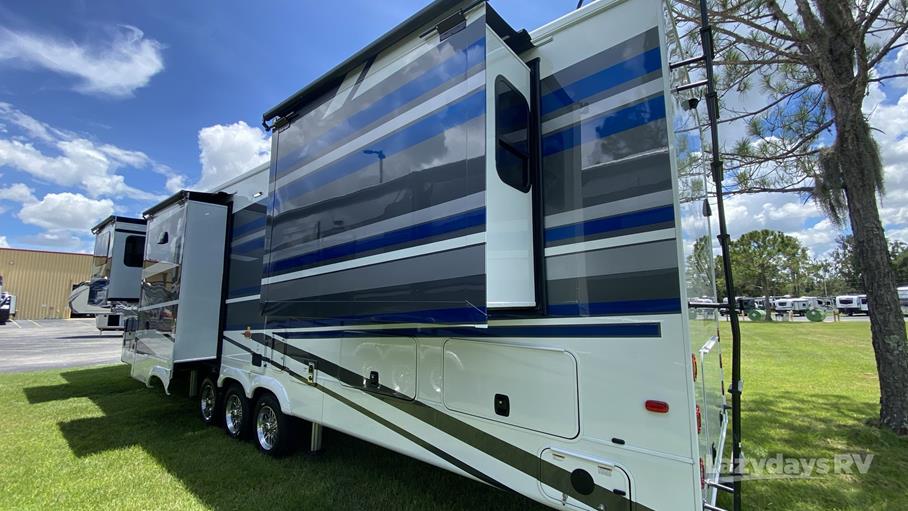 Weighing approximately 8,377 kilograms, this fifth wheel is engineered for stability and ease of towing. Its robust construction and high-quality materials promise durability and longevity, making it a wise investment for any travel enthusiast. The interior is thoughtfully designed, offering a blend of style and functionality. You'll find a fully equipped kitchen, a spacious living area, and a luxurious bathroom, all crafted to meet your needs on the road.